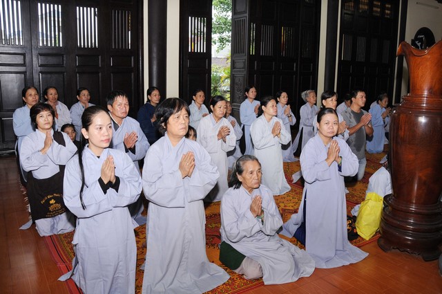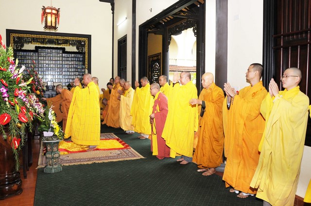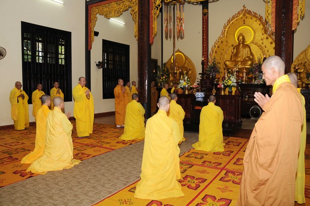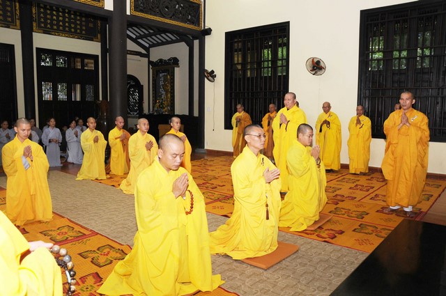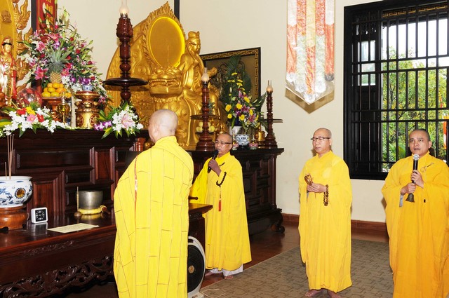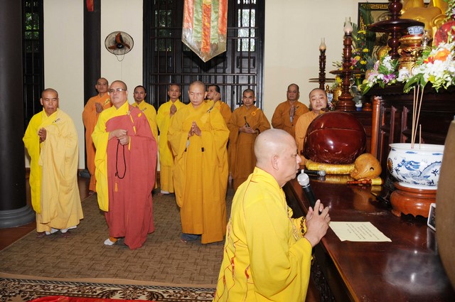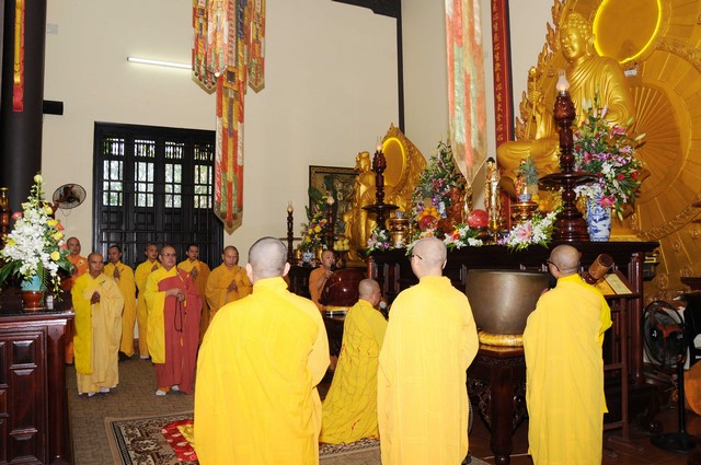Đúng 9g30, chư pháp tử cung thỉnh chư tôn đức quang lâm chánh điện cử hành lễ cúng ngọ – do TT.Thích Phước Minh, UV HĐTS GHPGVN, Phó BTS PG tỉnh đương vi sám chủ. Tiếp đó, chư tôn đức dâng hương tưởng niệm cung tiến Giác linh cố HT.Thích Viên Mãn. Khóa lễ được Thượng tọa sám chủ cùng chư tôn đức cử hành theo nghi thức thiền môn Phật giáo xứ Quảng.