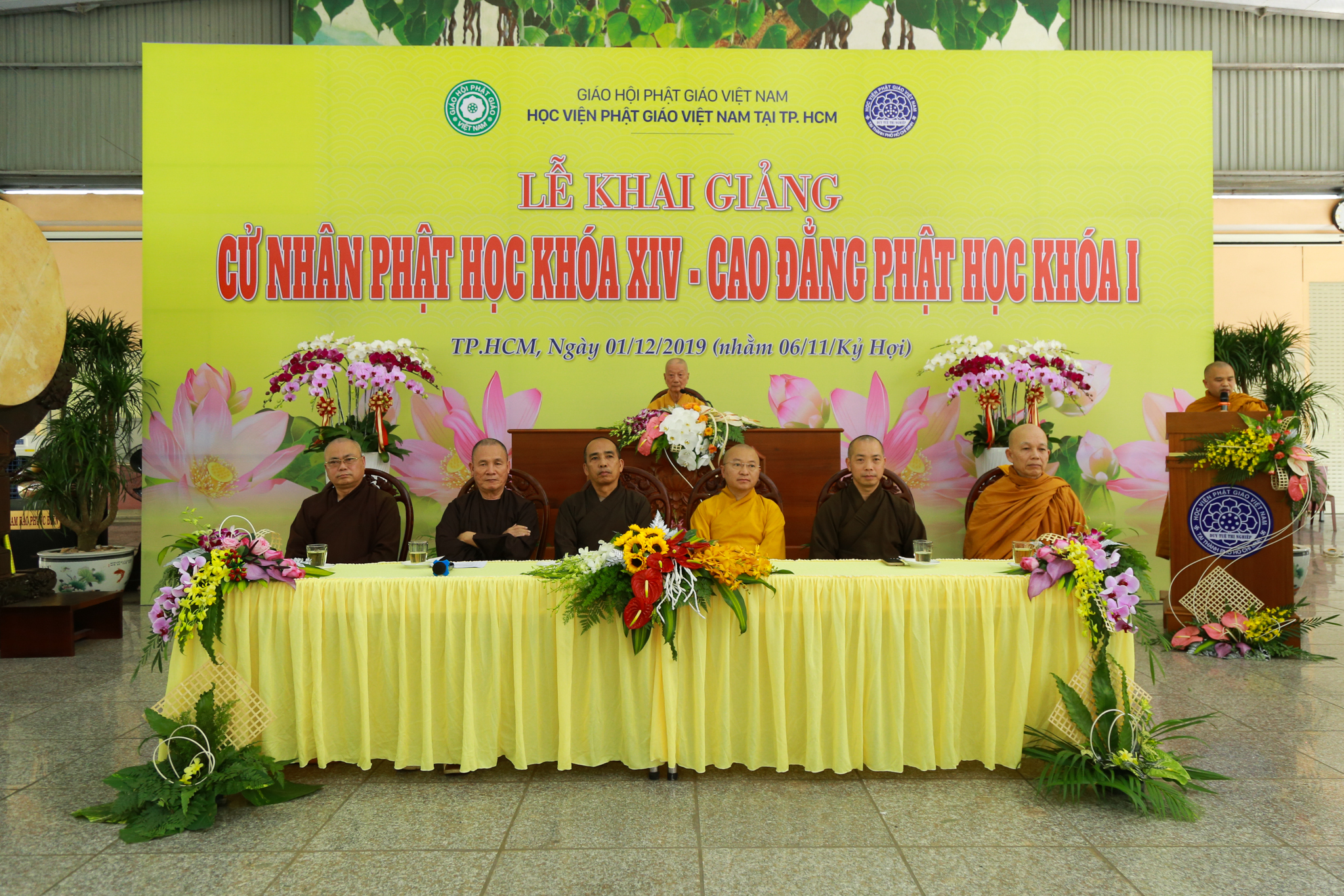 Chiều nay, 1/12/2019, tại cơ sở II Học viện Phật giáo Việt Nam (PGVN) tại Tp.HCM (xã Lê Minh Xuân, H.Bình Chánh), Hội đồng Điều hành Học viện PGVN tại TP.HCM đã tổ chức lễ khai giảng Cử nhân Phật học khoá XIV và Cao đẳng Phật học khoá I