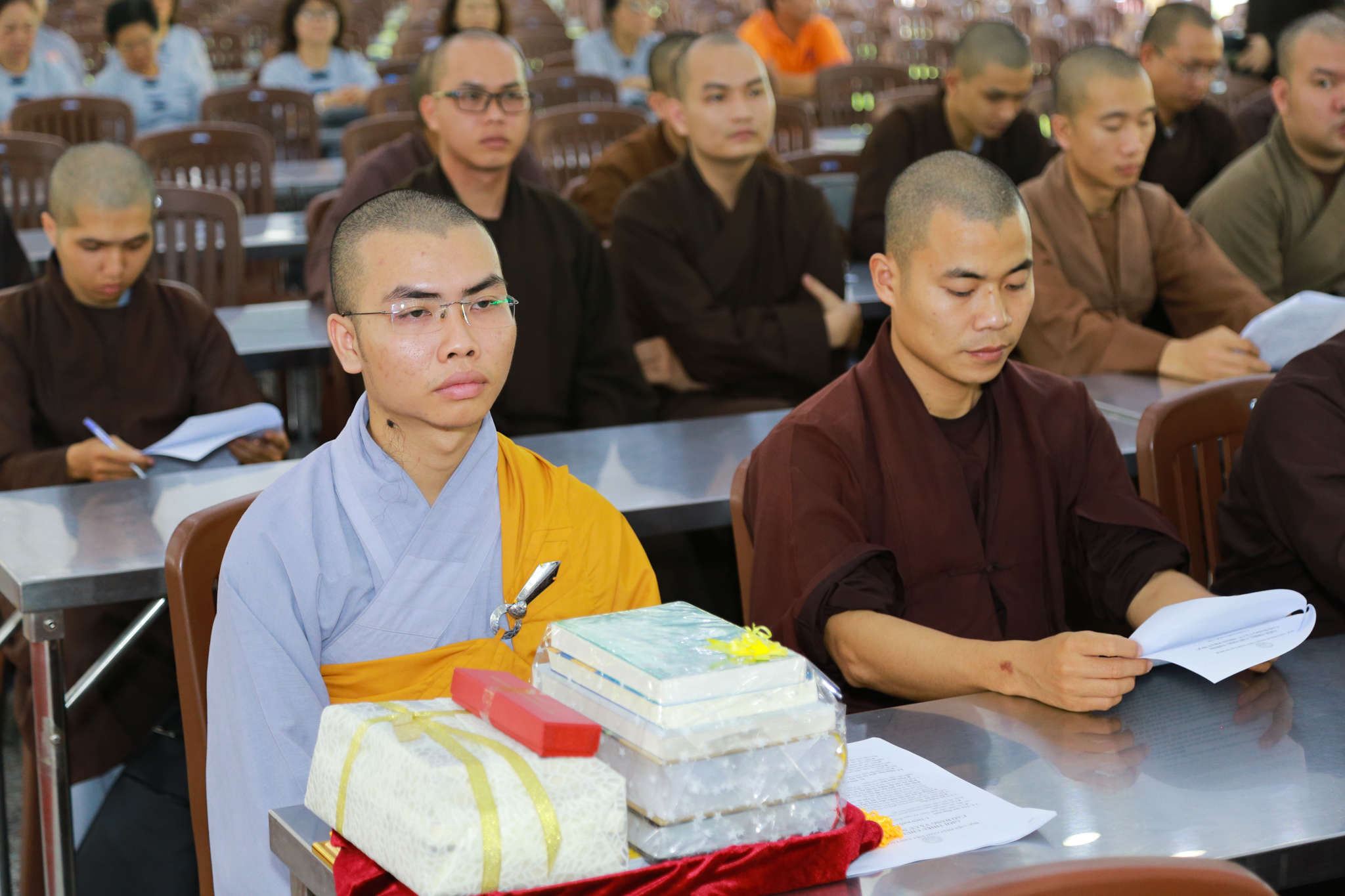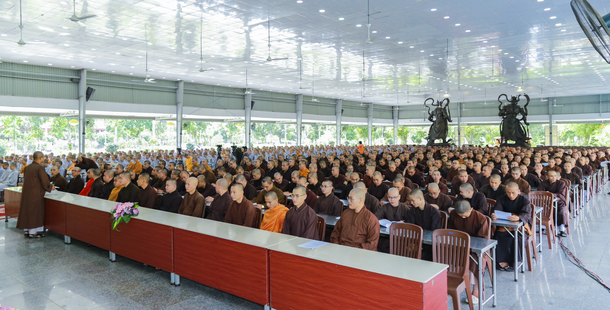 TT.Thích Nhật Từ và TT.Thích Viên Trí phát phần thưởng cho Tăng Ni sinh
