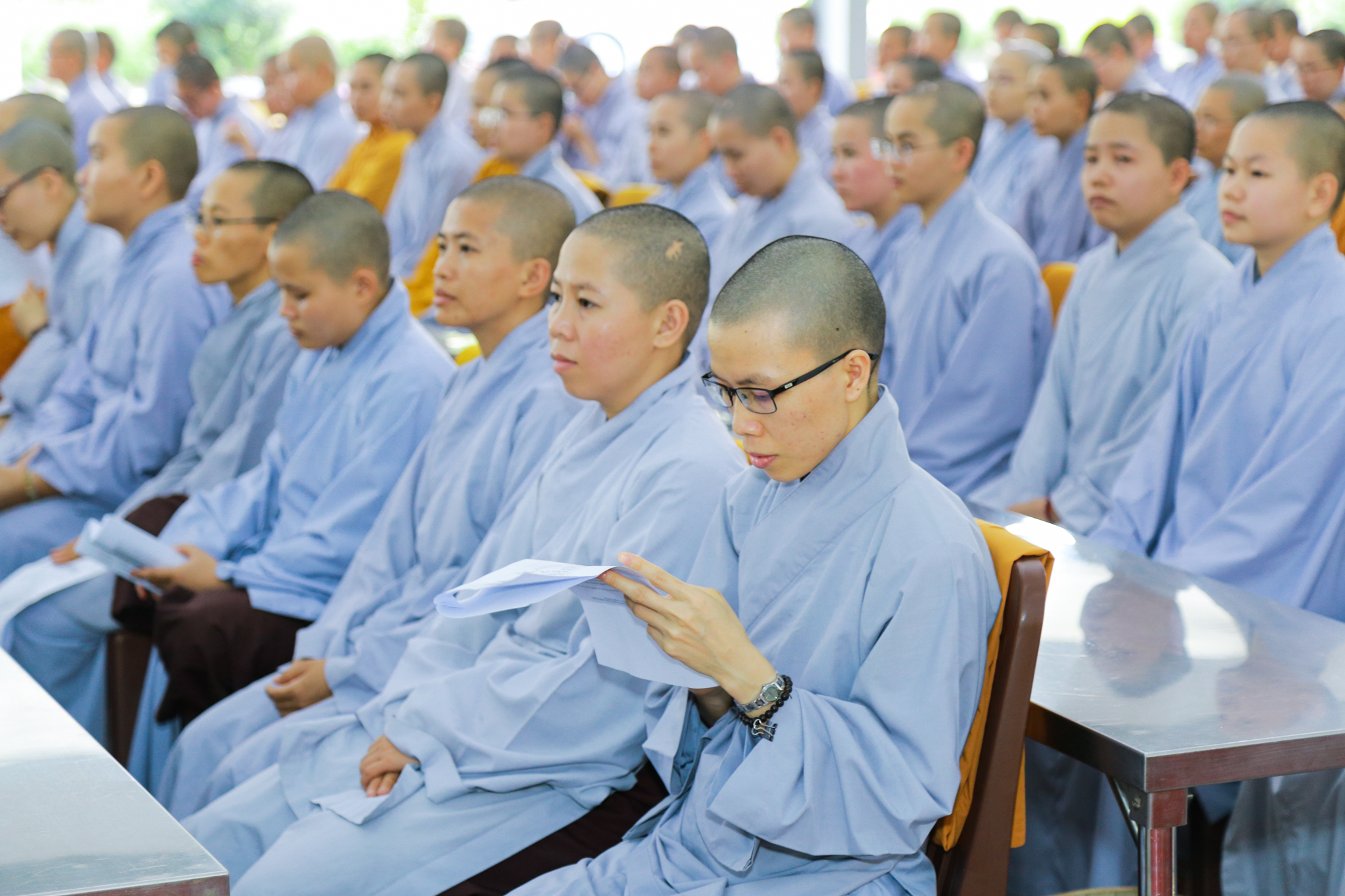 Buổi lễ diễn ra với sự quang lâm chứng minh và tham dự của Trưởng lão HT.Thích Trí Quảng – Phó Pháp chủ kiêm Giám luật HĐCM, Viện trưởng Học viện; TT.Thích Viên Trí, TT.Thích Nhật Từ – đồng Phó Viện trưởng Học viện; TT.Thích Quang Thạnh – Tổng Thư ký Hội đồng Điều hành Học viện; ĐĐ.Thích Giác Hoàng – Phó Tổng Thư ký kiêm Chánh Văn phòng Học viện; chư tôn đức lãnh đạo các khoa và giảng viên học viện, cùng Tăng Ni sinh khóa XII, XIII và XIV hệ cử nhân và khóa I hệ cao đẳng đồng tham dự.