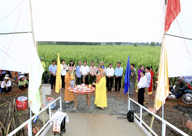 Trong niềm vui mừng bà con hai xã đã có cây cầu mới, không còn phải lo toan cảnh giao thông bất tiện, Đại diện các cấp chính quyền địa phương chân thành phát biểu cảm ơn nhà tài trợ đã phát tâm ủng hộ và không quên cảm niệm chư Tăng trong Ban Từ thiện Tổ Đình Kim Cang tận tâm hướng dẫn quý Phật tử làm tốt Phật sự lợi ích cho đời.