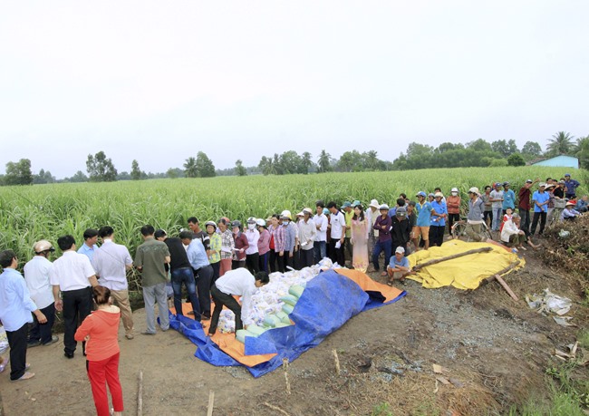 Về phía chính quyền có ông: Nguyễn Văn Sanh – Phó Ban Dân vận Huyện ủy Thủ Thừa; ông Hồ Phước Trung – Phó Bí thư Đảng ủy xã Tân Thành; ông Lê Văn Hồng – Chủ tịch UBND xã Tân Thành; bà Lê Thị Thu Hà – Phó chủ tịch UBND xã Tân Thành và đại diện chính quyền địa phương ấp 5, xã Tân Thành cùng bà con sở tại.