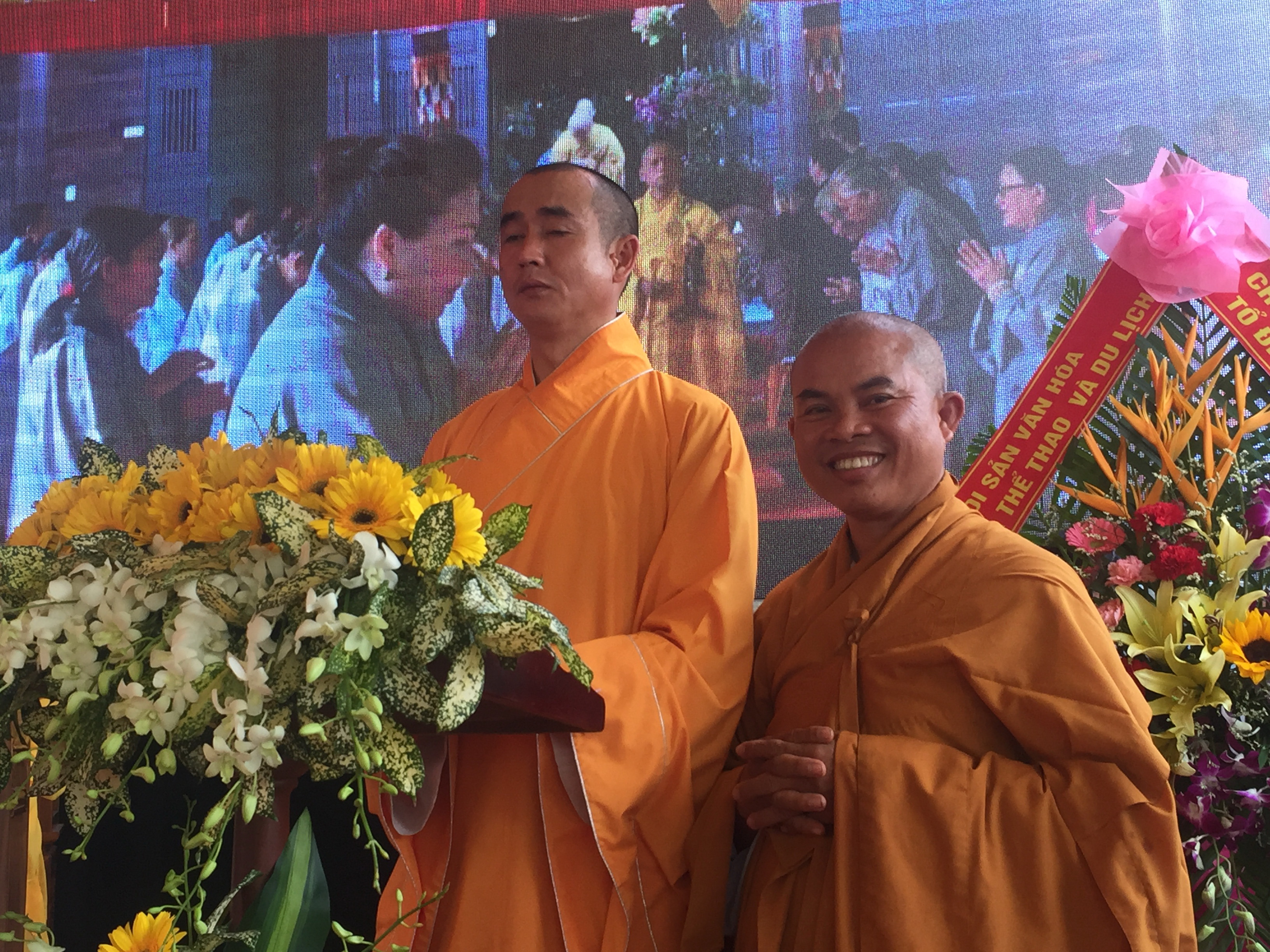 ĐĐ Thích Đồng Phước – trụ trì Tổ Đình Vạn Đức nhận hoa chúc mừng