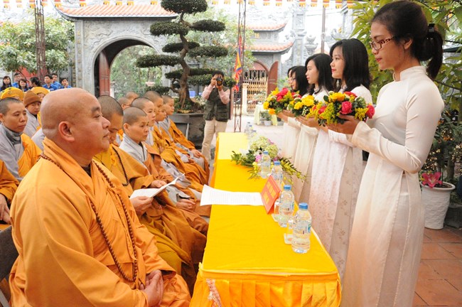 Sau đó là nghi thức dâng hoa cúng dàng của các bạn Thanh thiếu niên Phật tử chùa Tăng Phúc.