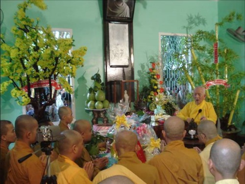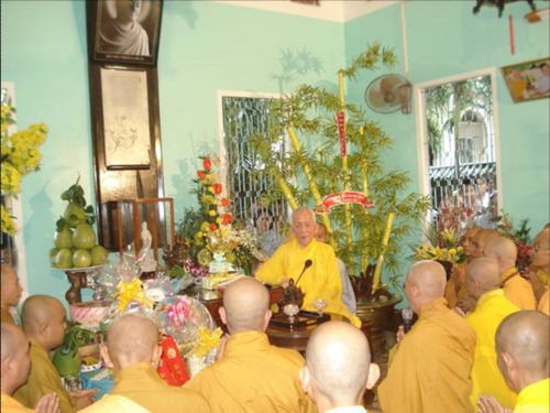 Tại buổi lể toàn thể Tăng Ni Phật tử đã dâng lên lời tác bạch mừng Khánh Tuế và được Hòa Thượng hoan hỷ ban huấn từ chỉ dạy.