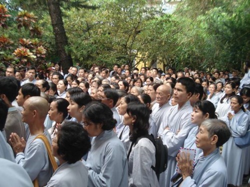 Đông đảo Phật tử lắng nghe Hòa thượng