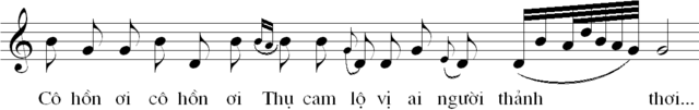 Thán (còn gọi Than)- lối giọng bi ai thường dùng để hát bản Văn tế cô hồn ở phần cuối lễ cúng Trai đàn, Giải oan, Đàn chay… để giúp vong linh gia tiên và chúng sinh cô hồn được hưởng vật phẩm cúng tế. Giọng Thán nhịp điệu tự do như ngâm ngợi, cuối mỗi trổ, bao giờ cũng có phần láy đuôi đặc trưng dạng điệp khúc “Cô hồn ơi! Cô hồn ơi! Thụ cam lộ vị của người cúng dâng”[7].
