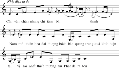 Cụ thể, bên cạnh những lời thuyết giảng dung dị, đạo Phật có cả một hệ thống âm điệu, có giá trị nghệ thuật tương đương như những điệu nhạc độc lập với kết cấu khá chặt chẽ, phong phú và đa dạng.