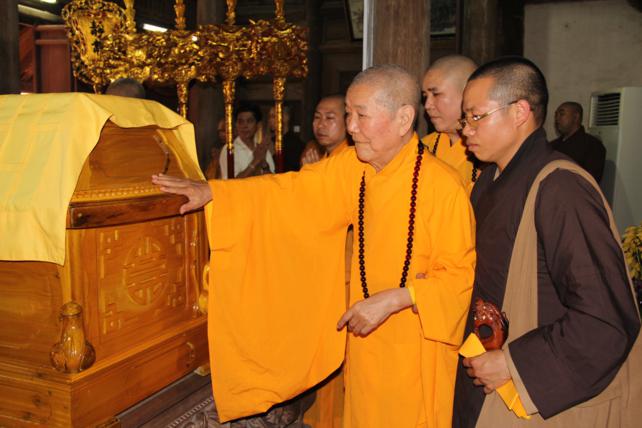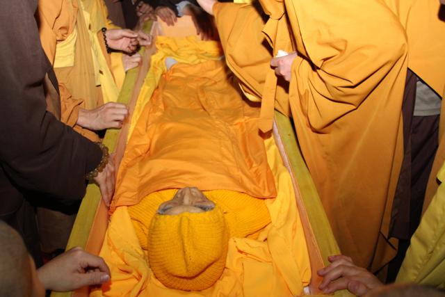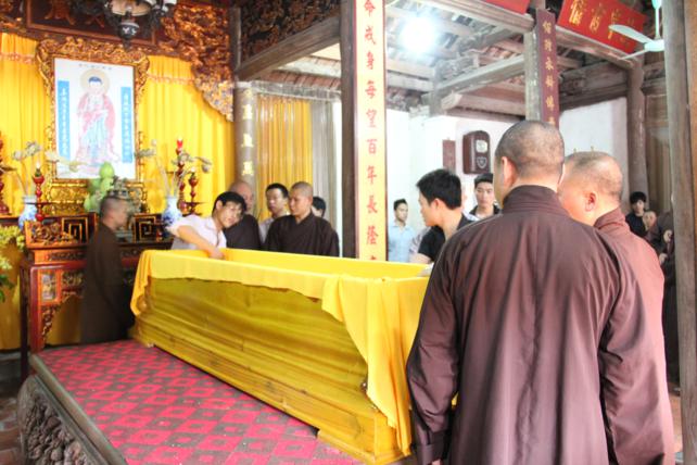 Lễ nhập kim quan chính thức cử hành vào lúc 14h00, ngày 24 tháng 03 năm 2013 ( ngày 17 tháng 7 năm Nhâm Thìn ). Kim quan được tôn trí tại Tổ đường chùa Hội Xá, xã Thắng Lợi, huyện Thường Tín, Tp. Hà Nội.