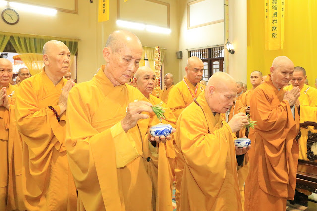 Lễ nhập kim quan diễn ra trong không khí trang nghiêm thành kính, chư Tôn đức Tăng Ni đã quang lâm Phật đài niêm hương, tụng kinh cầu nguyện, đồng cử nhành dương sái tịnh nhục thân và cung thỉnh thân tứ đại trưởng lão Hòa thượng tân viên tịch nhập kim quan tại Giác Linh đài Tổ đình Kim Huê, phường 1, Tp. Sa Đéc.