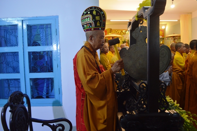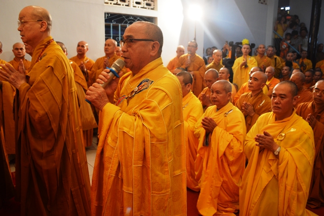 ĐĐ. Thích Tâm Hiền điều phối chương trình cung kính giới thiệu chư Tôn giáo phẩm Giáo hội Trung Ương và Ban Trị sự GHPGVN tỉnh Khánh Hòa tham dự.