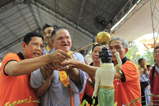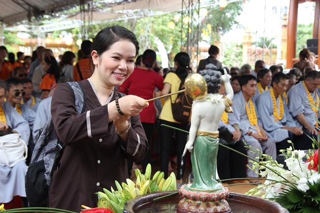 Lễ tắm Phật được tổ chức ở 2 khu vực: trong ngôi đại hùng bảo điện chưa xây dựng xong và cả ngoài sân còn lầy đất cát. 500 người mù được các tình nguyện viên hỗ trợ tiến hành nghi thức tắm Phật trong niềm hân hoan hạnh phúc. Vì quá đông nên các bạn phải dành nhiều thời gian dẫn dắt từng người lên lễ đài tắm Phật. có một bác mù tắm Phật xong ra chờ nhận quà đã bật khóc: “Đây là lần đầu tiên tôi được tắm Phật đó, tôi muốn năm sau đưa hết cả nhà đi về đây để được tắm Phật. Vợ và con tôi đều khiếm thị, nhưng về Thiên Quang thì được các cháu tình nguyện viên giúp đỡ tận tình từ lúc vừa đặt chân đến cổng”.