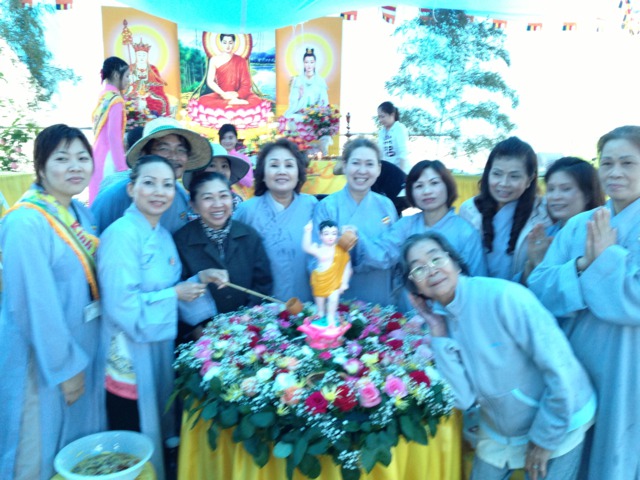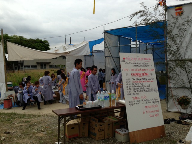 Mùa Phật đản năm nay, lần đầu tiên tổ chức tại mảnh đất vừa mua Himeji, dùng giàn sắt dựng lên thành lễ Đài tạm thời cho các Phật tử quy tụ về cùng chiêm ngưỡng và đảnh lễ. Buổi lễ diễn ra trong không khí trang nghiêm, được khoảng 1 giờ, đến lúc làm lễ Tắm Phật thì mưa ập xuống xối xả như cảnh chư Thiên rưới hương hoa và nước tắm Phật. Buổi lễ diễn ra trong không khí như vậy, mặc dù bị ướt cả người (vì rạp che bằng bạt) nhưng mọi người cũng rất vui và ở lại đến chiều tối mới về. Cảnh vừa làm lễ vừa lấy cây sào chọc cho nước mưa chảy xuống làm cho bao người cảm động chảy nước mắt trong mùa Phật đản, bởi vậy ai cũng hết sức cầu nguyện cho đại sự này sớm hình thành.