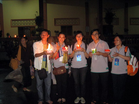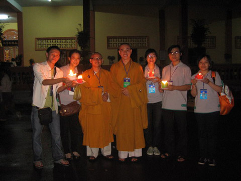 Sau buổi lễ quán đảnh, Phật tử tham gia buổi lễ cúng đèn chư Phật và Bồ Tát.