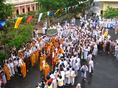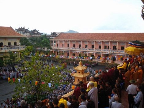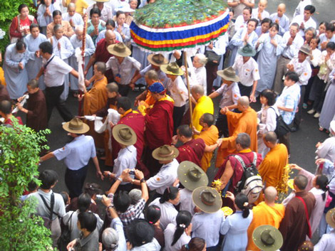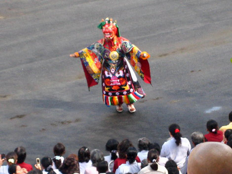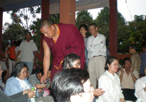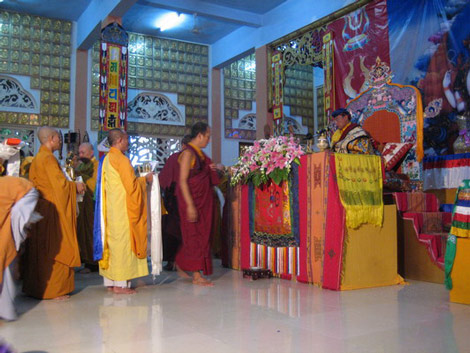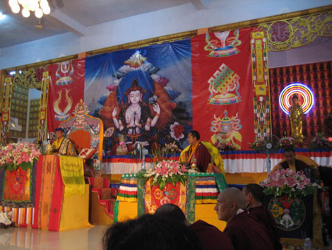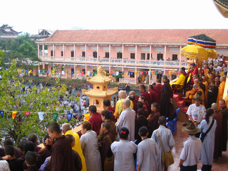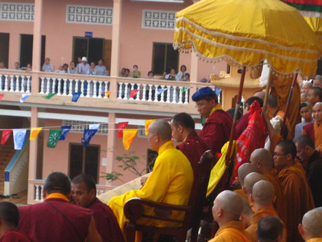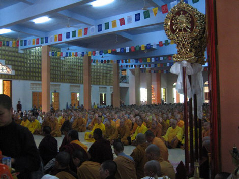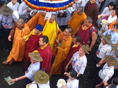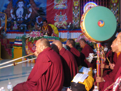Đông đảo tăng, ni và Phật tử quy tụ về Đại Tùng Lâm. Buổi lễ bắt đầu bằng vũ điệu Kim Cương Thừa . Bốn vũ công đeo các mặt nạ sư tử xanh lục, trắng, đỏ và cam trong trang phục rất đẹp và lạ mắt biểu diễn điệu múa mang tính biểu tượng.