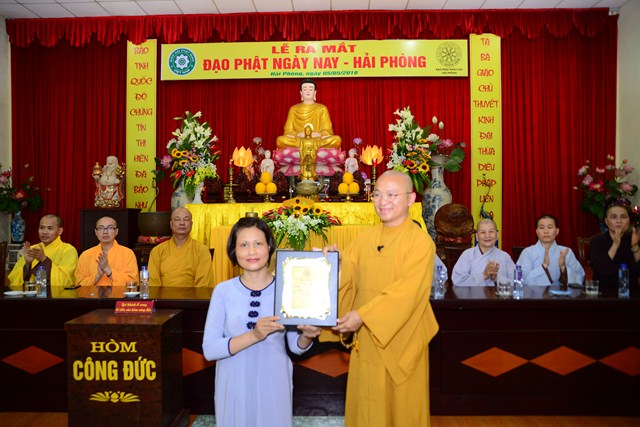 Tại buổi lễ ra mắt đạo tràng ĐPNN tại Hải Phòng, thượng tọa Thích Nhật Từ đã trao bằng tuyên dương công đức cho các Phật tử đã có thành tích hộ trì Tam Bảo, xây dựng đạo tràng ĐPNN tại Hải Phòng và trao quyết định thành lập Đạo tràng ĐPNN tại Hải Phòng cho Phật tử Diệu Huệ Đoàn Thị Minh Tuyết – Trưởng ban đại diện Đạo tràng ĐPNN tại Hải Phòng.