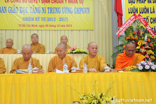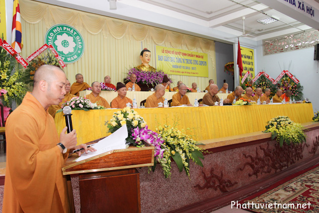 Tại lễ công bố, HT. Thích Thiện Pháp – Phó Tổng Thư Ký kiêm Chánh văn phòng 2 đã tuyên đọc quyết định chuẩn y thành phần nhân sự của Ban giáo dục Tăng Ni TW, nhiệm kỳ 2012 – 2014, gồm 92 thành viên, do HT. Thích Chơn Thiện – Phó Chủ tịch thường trực HĐTS làm trưởng Ban.