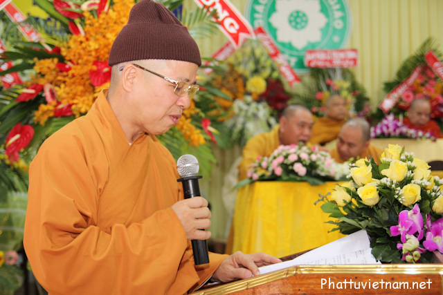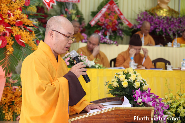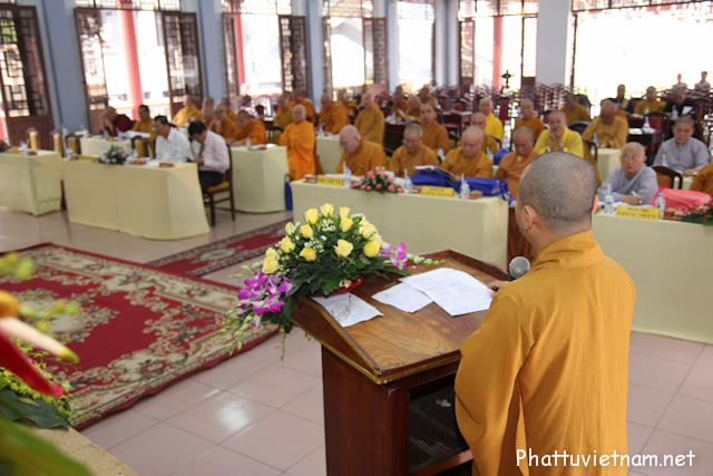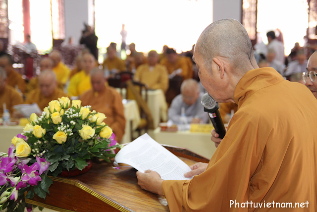 TT. Thích Thanh Quyết – Uỷ viên Thường Trực HĐTS kiêm Phó trưởng Ban Thường trực Ban giáo dục Tăng Ni tuyên đọc Thông qua Nội quy của Ban giáo dục Tăng Ni