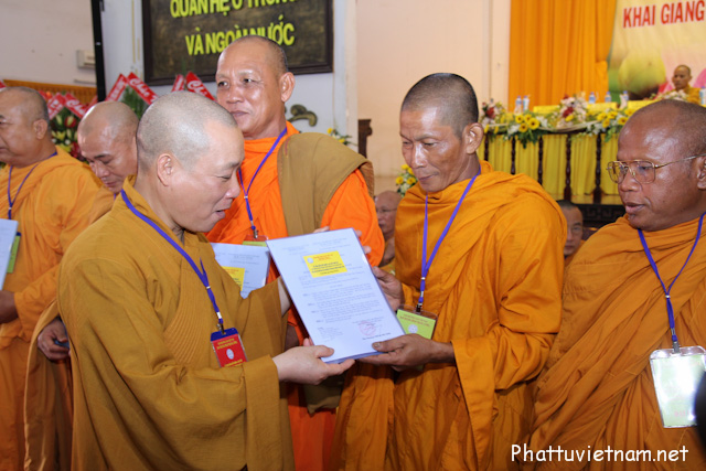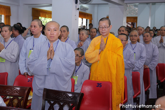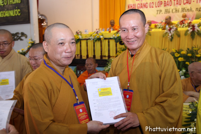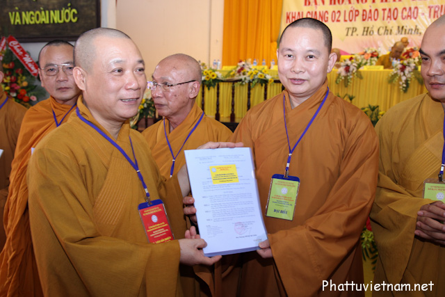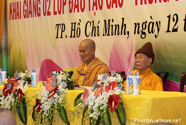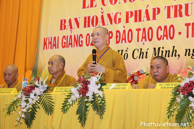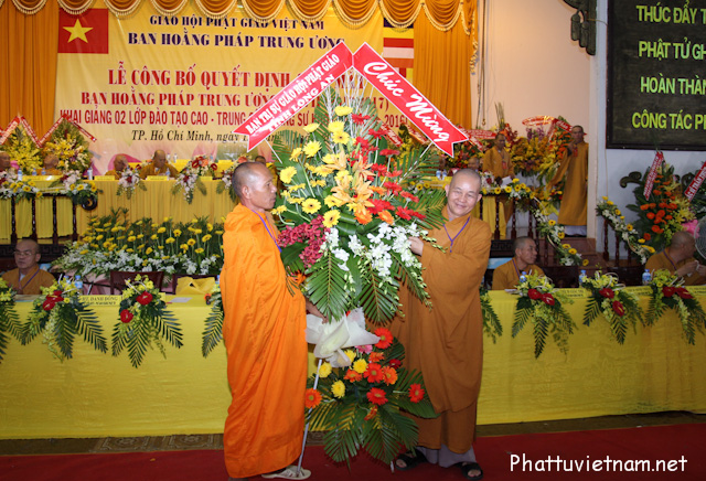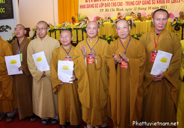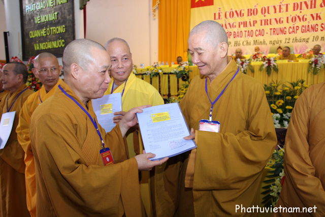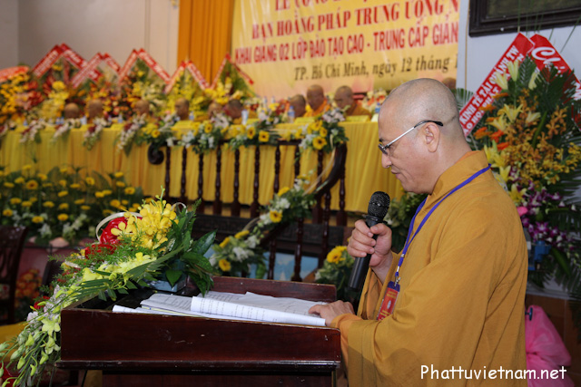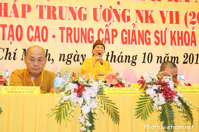 Tiếp tục chương trình, thay mặt trường đào tạo cao trung cấp giảng sư – TT.Thích Huệ Thông báo cáo kết qủa tuyển sinh khóa VII hai lớp trung cao đào tạo trung cao giảng sư BHPTW niên khóa (2013 – 2016) , lớp cao cấp giảng sư khóa VII có 76 Tăng Ni sinh (Tăng: 33, Ni: 42) trúng tuyển, lớp trung cấp giảng sư có 69 Tăng Ni sinh (Tăng: 32, Ni: 37).