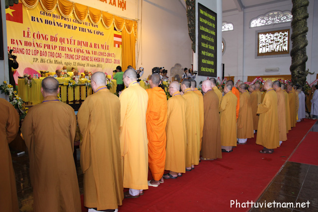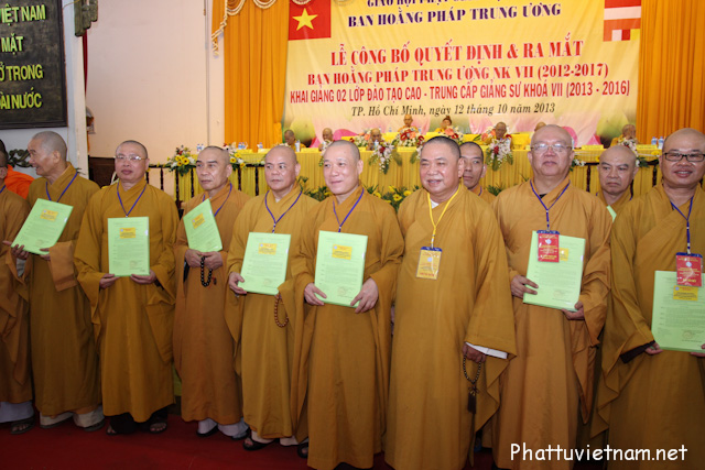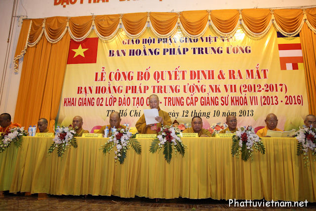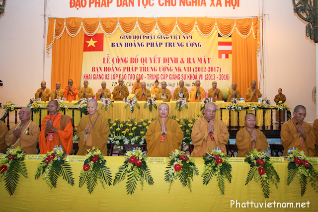 Phattuvietnam.net xin giới thiệu hình ảnh của buổi lễ Công Bố Quyết Định Và Ra Mắt Nhân Sự Ban Hoằng Pháp Trung Ương GHPGVN – Nhiệm Kỳ VII (2012 – 2017) Khai Giảng Hai Lớp Đào Tạo Cao Trung Cấp Giảng Sư Khóa VII (2013 – 2016):