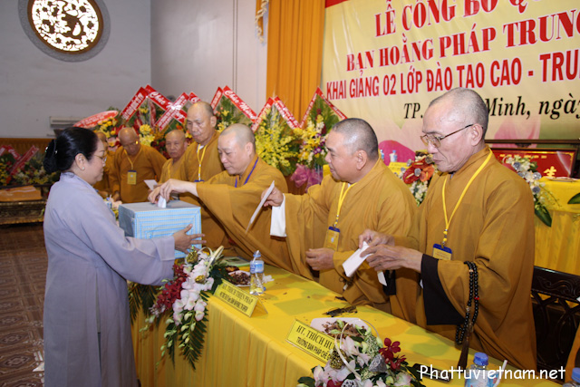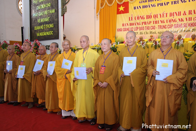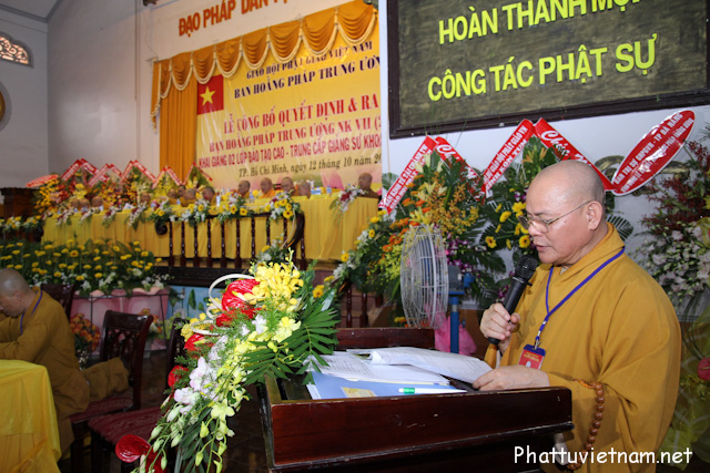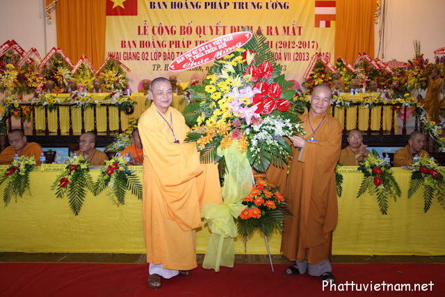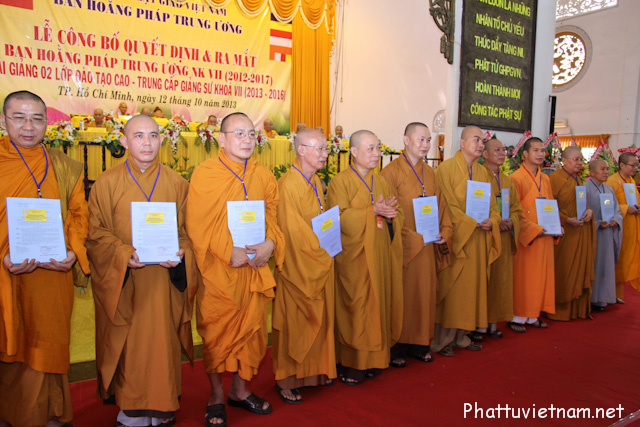 Thay mặt TWGHPGVN – Hòa Thượng Thích Thiện Pháp tuyên đọc quyết định chuẩn y nhân sự Ban Hoằng Pháp TW.GHPGVN nhiệm kỳ VII (2012 – 2017), theo danh sách BHPTW – NK7 có 175 thành viên chính thức do HT.Thích Bảo Nghiêm – Phó chủ tịch HĐTS làm trưởng ban. Về ban thường trực BHPTW có 58 thành viên, ngoài ra có 15 ban phụ trách chuyên môn như: Biên soạn giáo lý, đào tạo giảng sư, hội thi giáo lý, tập huấn hoằng pháp viên phật tử, tổ chức sự kiện, văn hóa văn nghệ, phật giáo quốc tế, phật giáo nam tông, phật giáo khất sĩ, phật giáo nam tông Khmer, tổ chức các khóa tu, thanh thiếu niên phật tử, thông tin truyền thông (tạp chí – web), dân tộc – vùng sâu vùng xa.