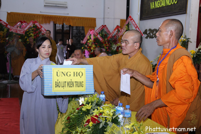 Nhân dịp này, HT.Thích Bảo Nghiêm kêu gọi chư tôn đức Tăng Ni Phật tử và các nhà mạnh thường quân – nhà hảo tâm ủng hộ tịnh tài tịnh vật góp phần chia sẻ một nắm khi đói bằng một gói khi no đến đồng bào ruột thịt miền trung đang phải hứng chịu những tổn thất do cơn bão gây ra trong gần một tháng qua.