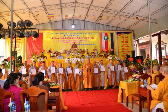 Về phía Ni giới có sự chứng minh của: Đại trưởng lão Ni Thích Đàm Thảo (105 tuổi) – Chứng minh Ni giới GHPGVN tỉnh Hải Dương; Ni trưởng Thích Đàm Nghiêm – Ủy viên Ban thường trực HĐTS GHPGVN, Phó trưởng Ban thường trực phân ban Ni giới TW phụ trách khu vực phía Bắc; Ni sư Thích Đàm Lan – Ủy viên Ban thường trực HĐTS GHPGVN, Phó phân ban Ni giới TW, Phó trưởng phân ban Ni giới thành phố Hà Nội; Ni sư Thích Diệu Hương – Phó BTS kiêm Phó Ban tăng sự, Trưởng phân ban Ni giới GHPGVN tỉnh Hải Dương; Ni sư Thích Diệu Ngân – Phó phân ban thường trực Ni giới GHPGVN tỉnh Hải Dương cùng chư tôn đức Ni chứng minh phân ban Ni giới tỉnh Hải Dương, chư tôn đức Ni Trưởng – Phó phân ban Ni giới các tỉnh thành khu vực phía Bắc và chư tôn đức Ni GHPGVN tỉnh Hải Dương.