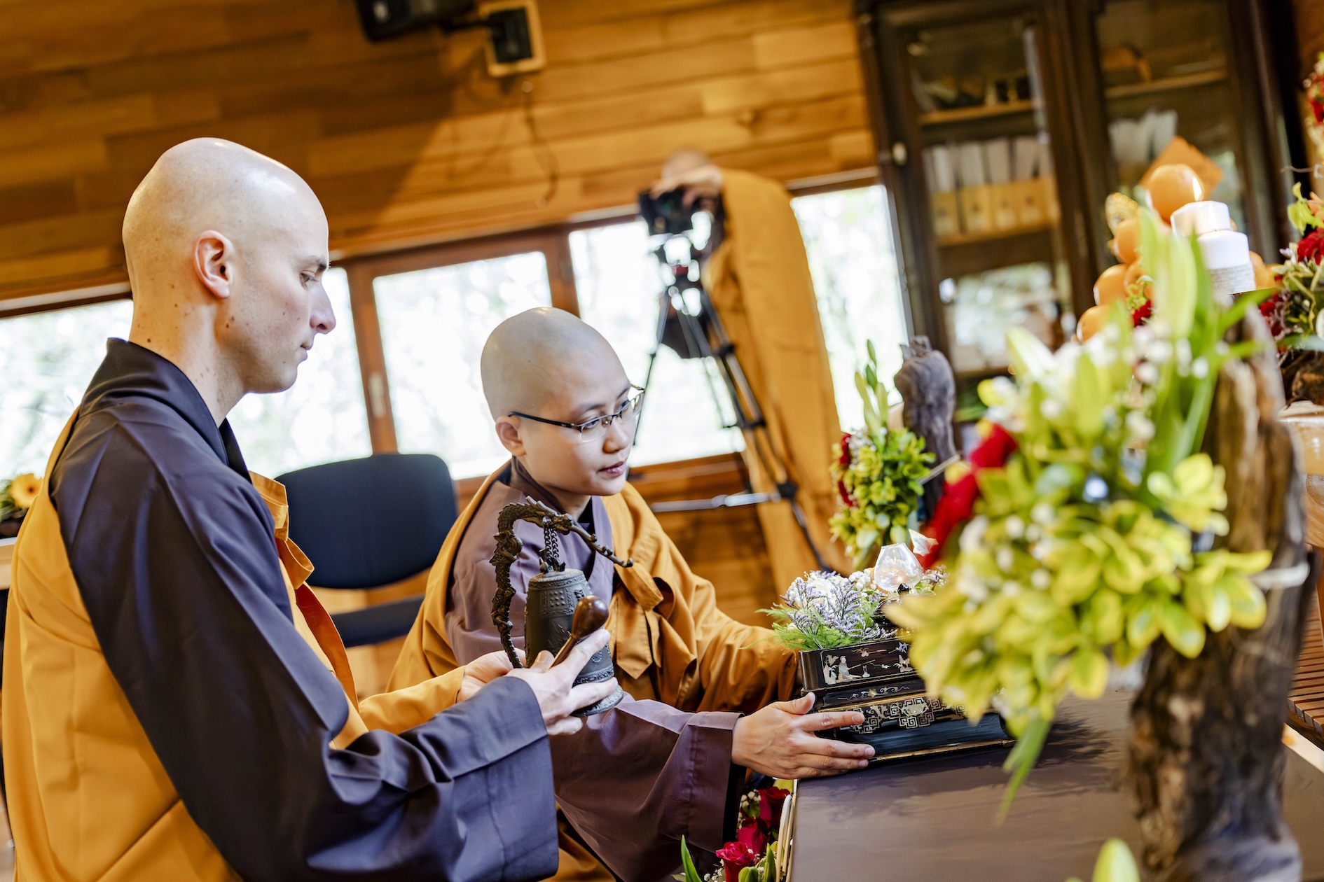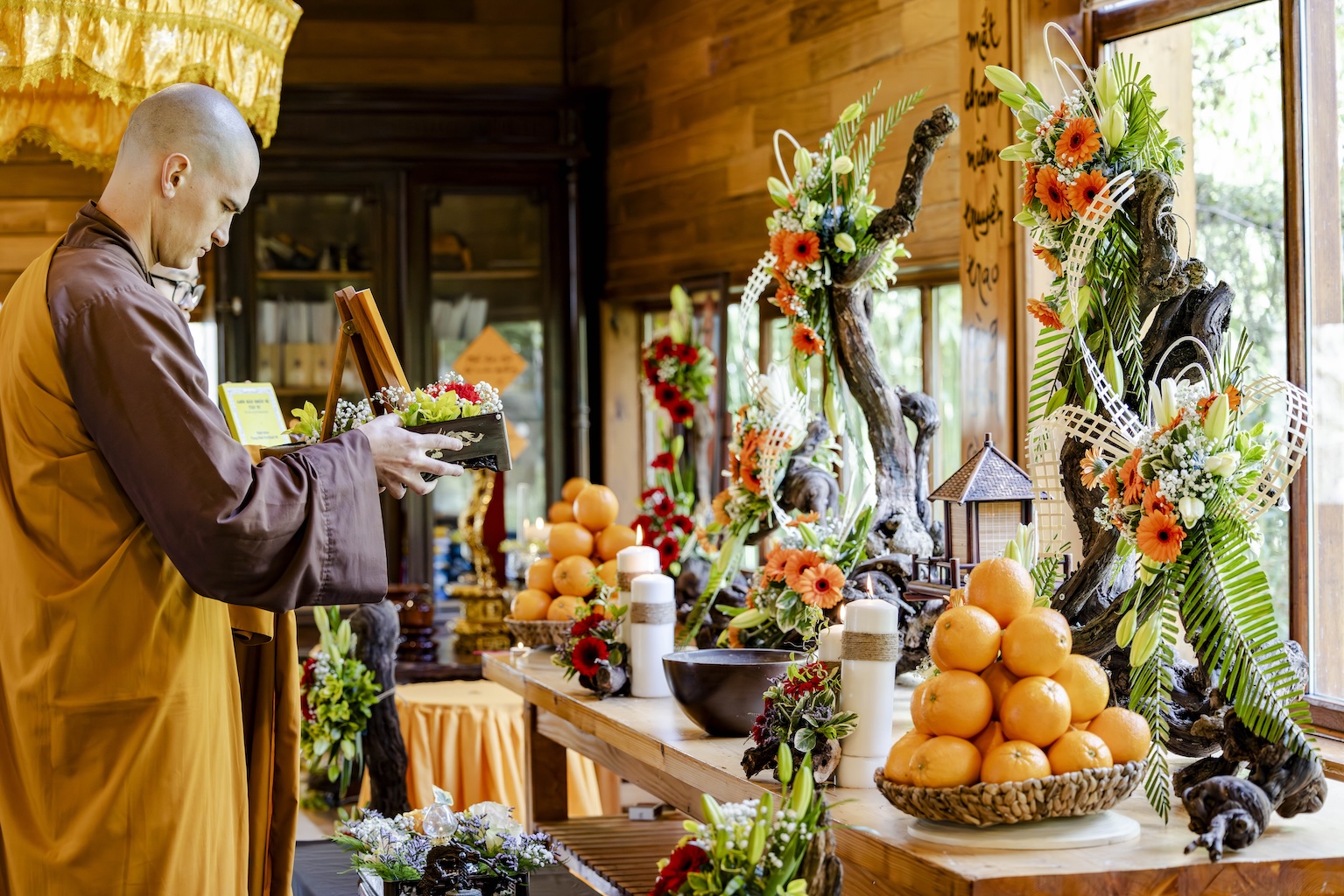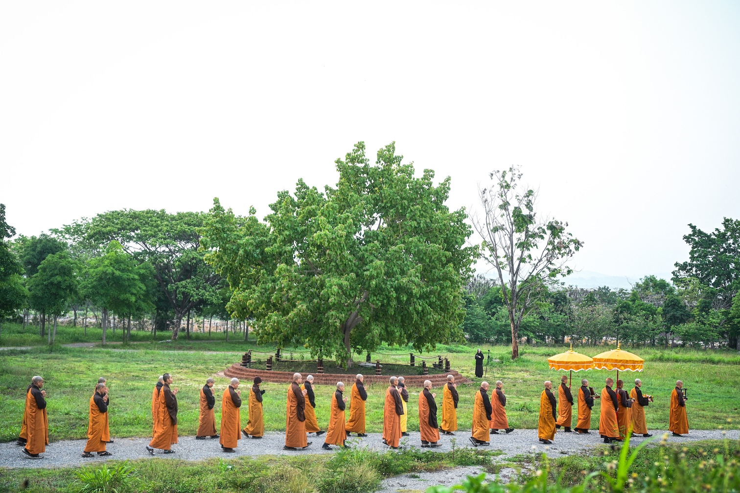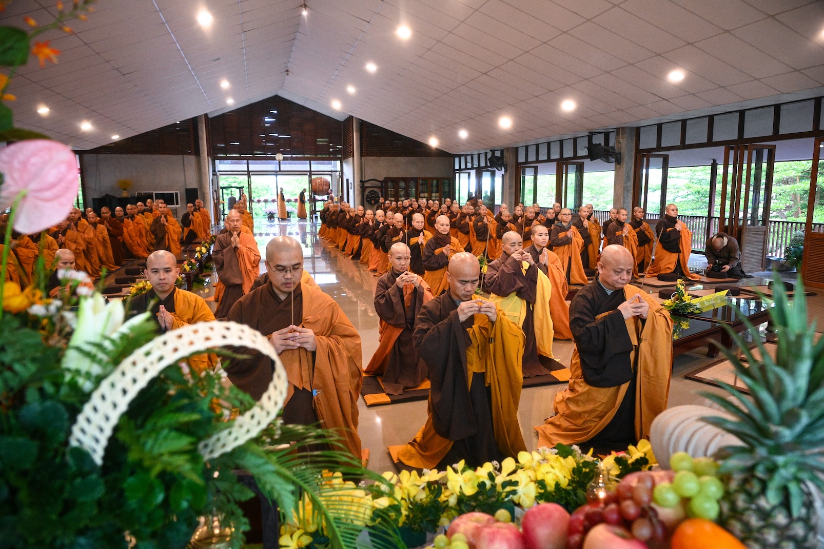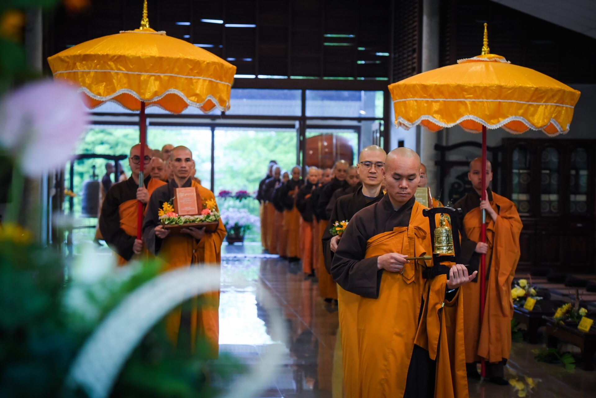 Trong không khí trang nghiêm và thanh tịnh, từng bước chân chậm rãi của các vị xuất sĩ trong y vàng rực rỡ hoà cùng tiếng chuông, tiếng trống bát nhã vang vọng khắp núi đồi xóm Thượng. Đất trời như rung động, hoan hỷ trước sự thành kính của các giới tử và đại chúng, những người một lòng cầu thỉnh giới pháp của Bụt – là ánh sáng soi đường cho sự thực tập, chuyển hoá và phụng sự.