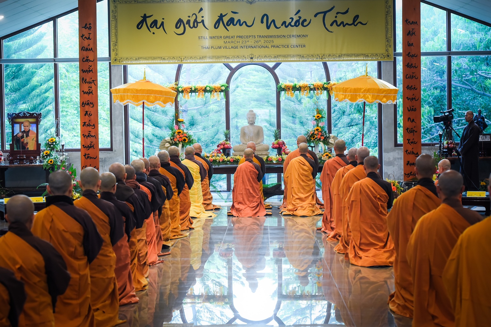 Được biết, Tứ chúng Làng Mai trang trọng tổ chức Đại Giới Đàn Nước Tĩnh, truyền giới cho các giới tử xuất gia từ các trung tâm Làng Mai trên khắp thế giới.