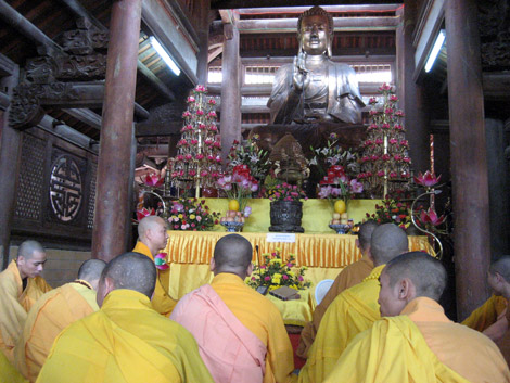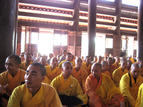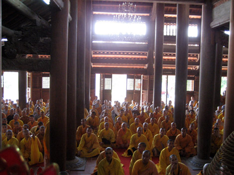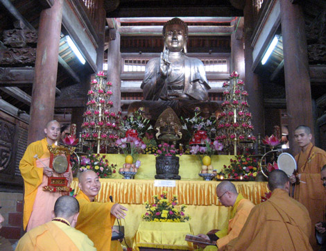 Đúng 8h sáng ngày 16 tháng 4 năm Đinh Hợi, tiếng đại hồng chung ngân vang khắp núi rừng Sóc Sơn hùng vĩ, áo vàng áo lam của sư Tăng, sư Ni chỉnh tề quang lâm lên chính điện chùa Non để lễ Phật, niệm Phật cầu gia bị. Không gian chùa trang nghiêm, tiếng niệm Phật, tụng kinh âm vang khắp pháp giới.