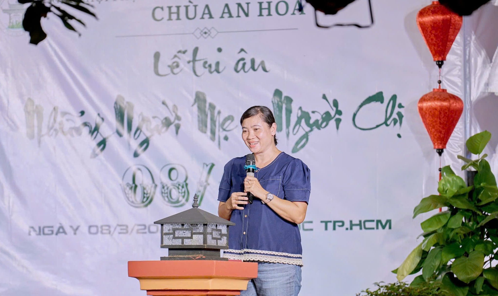 Bà đặc biệt đánh giá cao vai trò của nữ Phật tử – những người vừa chu toàn gia đình, công việc, vừa tinh tấn tu học và tích cực tham gia các hoạt động thiện nguyện. Bà nhấn mạnh rằng những việc làm ý nghĩa này đã góp phần xây dựng một xã hội nhân ái, gắn kết và hướng thiện. Đồng thời, bà bày tỏ lòng tri ân sâu sắc đến những người mẹ, người chị đã đồng hành cùng chùa, đóng góp không ngừng nghỉ cho đạo pháp và đời sống cộng đồng.