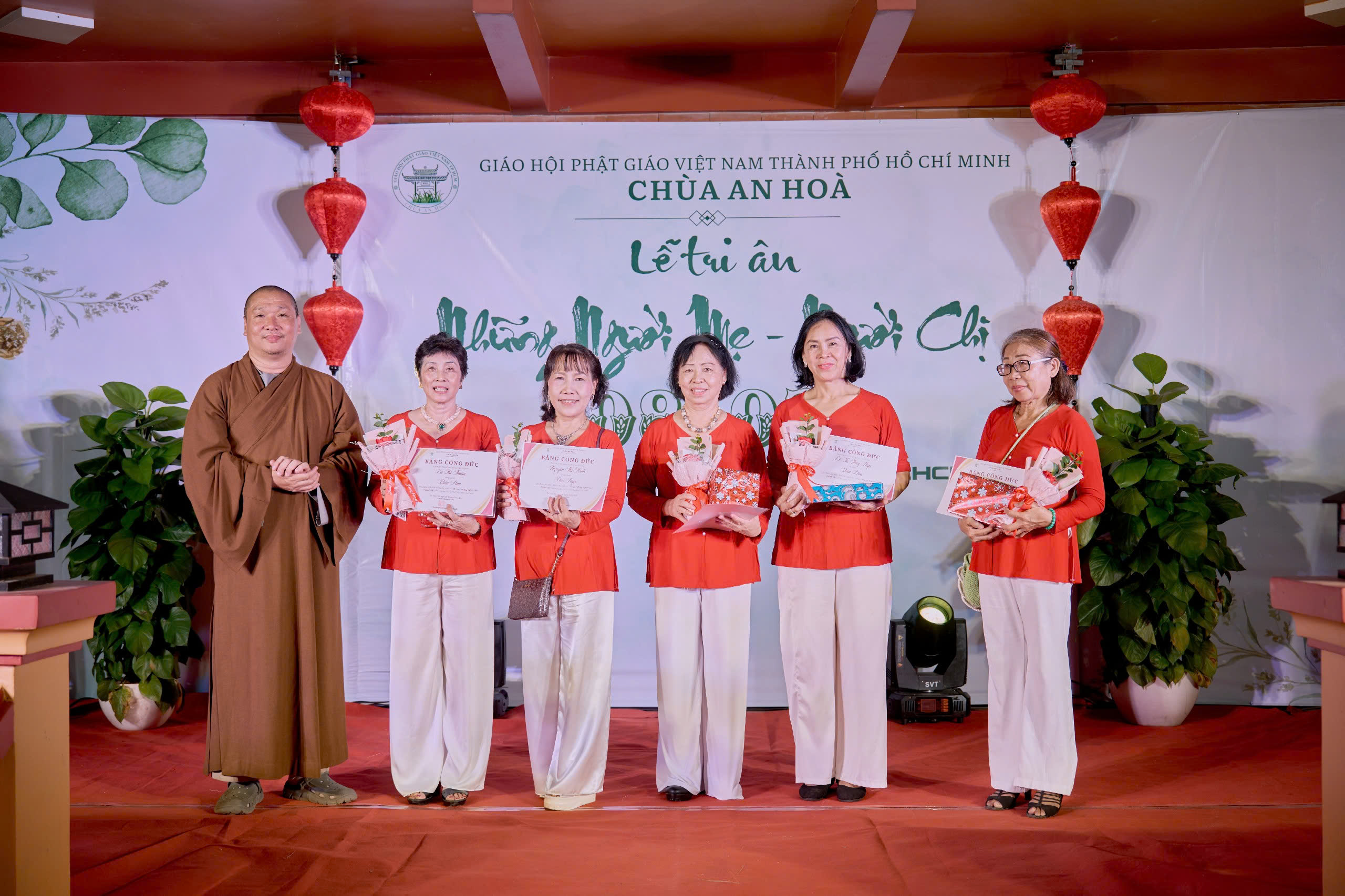 Nhân dịp này, Ban tổ chức cũng chúc mừng ngày Quốc tế Phụ nữ 8/3 với chương trình văn nghệ và tặng quà tri ân những người mẹ, người chị đã tận tụy phụng sự nhân sinh. Đây không chỉ là dịp để tri ân những người phụ nữ thầm lặng hy sinh mà còn là cơ hội để tất cả Phật tử nhìn lại chặng đường tu tập, tiếp tục phát huy tinh thần từ bi và trí tuệ, đồng hành cùng chùa trên con đường phụng sự đạo pháp và xã hội.