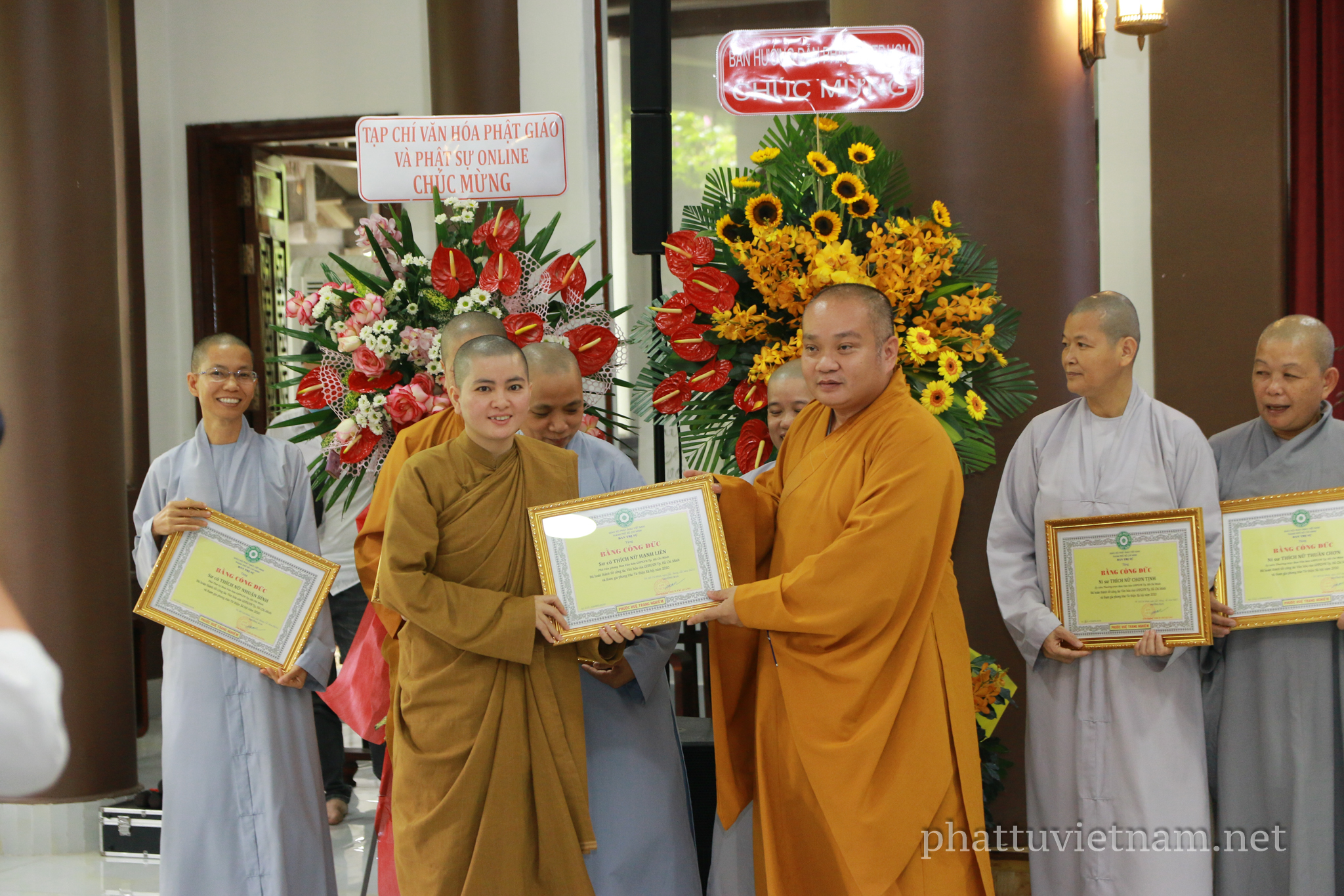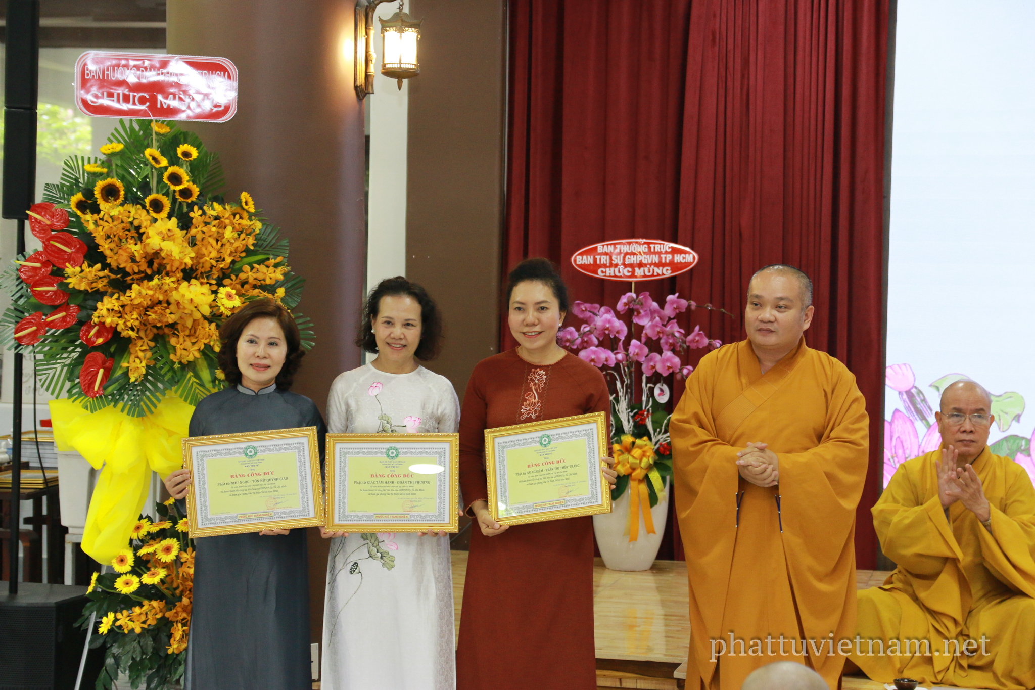 Tại buổi lễ, Ban Trị sự GHPGVN TP.HCM, Ban Văn Hóa GHPGVN TP đã tặng Bằng tuyên dương công đức, bằng công đức đến các cá nhân đã có những đóng góp vào các Phật sự của Ban Văn hóa nói riêng và Phật giáo TP.HCM nói chung.