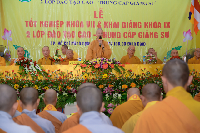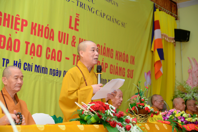 HT.Thích Bảo Nghiêm phó Chủ tịch HĐTS, Trưởng Ban hoằng pháp GHPGVN phát biểu khai mạc Lễ tốt nghiệp