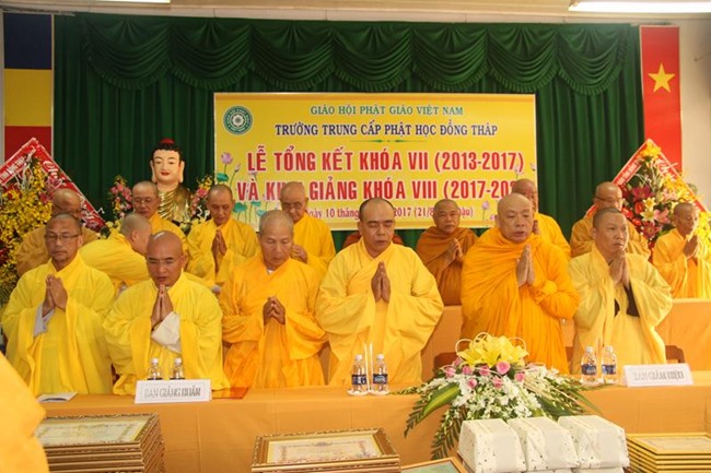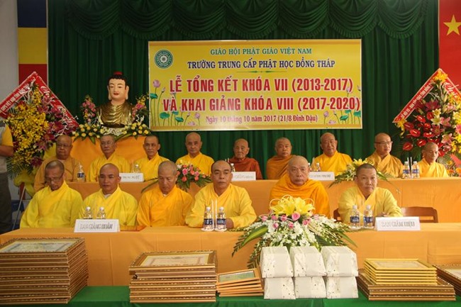 HT. Thích Thiện Huệ, Hiệu trưởng Trường trung cấp Phật học tỉnh Đồng Tháp đã phát biểu; nhân sự kế thừa nền là nền tảng tốt, duy trì sự ổn định, chiêu nguồn nhân lực trẻ cho hiện tại và tương lai, đạo tạo theo chương trình hướng dẫn của Ban Giáo Dục Tăng Ni Trương ương để phù hợp với cấp học của từng Tăng ni theo học. Muốn thực hiên tốt về khoá học thì Ban giám hiệu Chư vị giáo thọ sư, Quý thầy cô trong ban giản huấn chịu trách nhiệm trực tiếp giảng dạy cho Tăng ni sinh. Khoá VII (2013-2017) đã đào tạo tốt nghiệp cho 59 Tăng ni sinh và khai giảng khoá VIII (2017-2020). Những điểm cần quan tâm cho khoá mới là nâng tầm chất lượng về cách giảng dạy nghiêm cứu và đưa các hình thức hoạt động các môn học cho hợp lý của khoá VIII này….. Hoà thượng nhấn mạnh.
