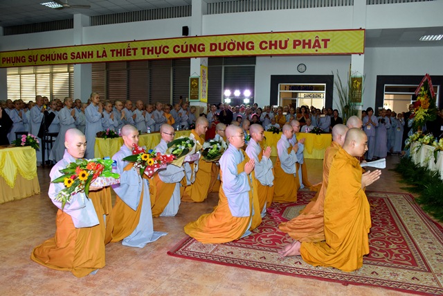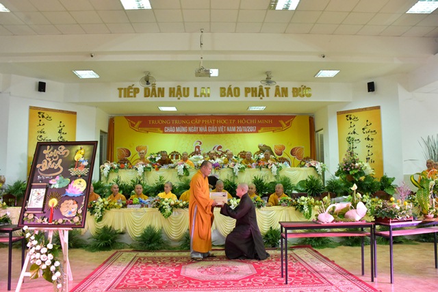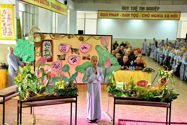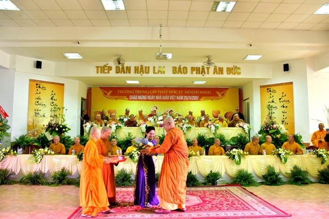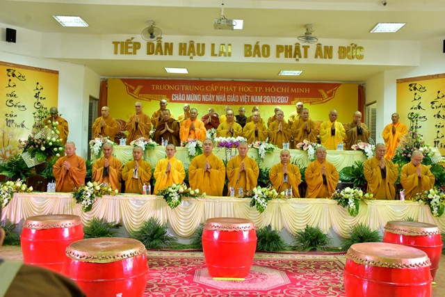 Trong buổi lễ đại diện Tăng – Ni sinh của trường đã dâng lời chúc từ đến Hòa Thượng Hiệu trưởng cùng Chư Tôn Đức Ban giám hiệu – văn phòng, Ban Giảng Huấn. Hơn 1.000 Tăng – Ni sinh tham dự buổi lễ tại giảng đường, hội trường đều hoan hỷ lắng nghe lời đáp từ dạy dỗ từ Hòa Thượng Hiệu Trưởng nhắc nhở Tăng – Ni sinh cố gắng nghe lời, tu tập tốt để không phụ công ơn dạy bảo của Chư Tôn Đức cũng như các vị giáo thọ.