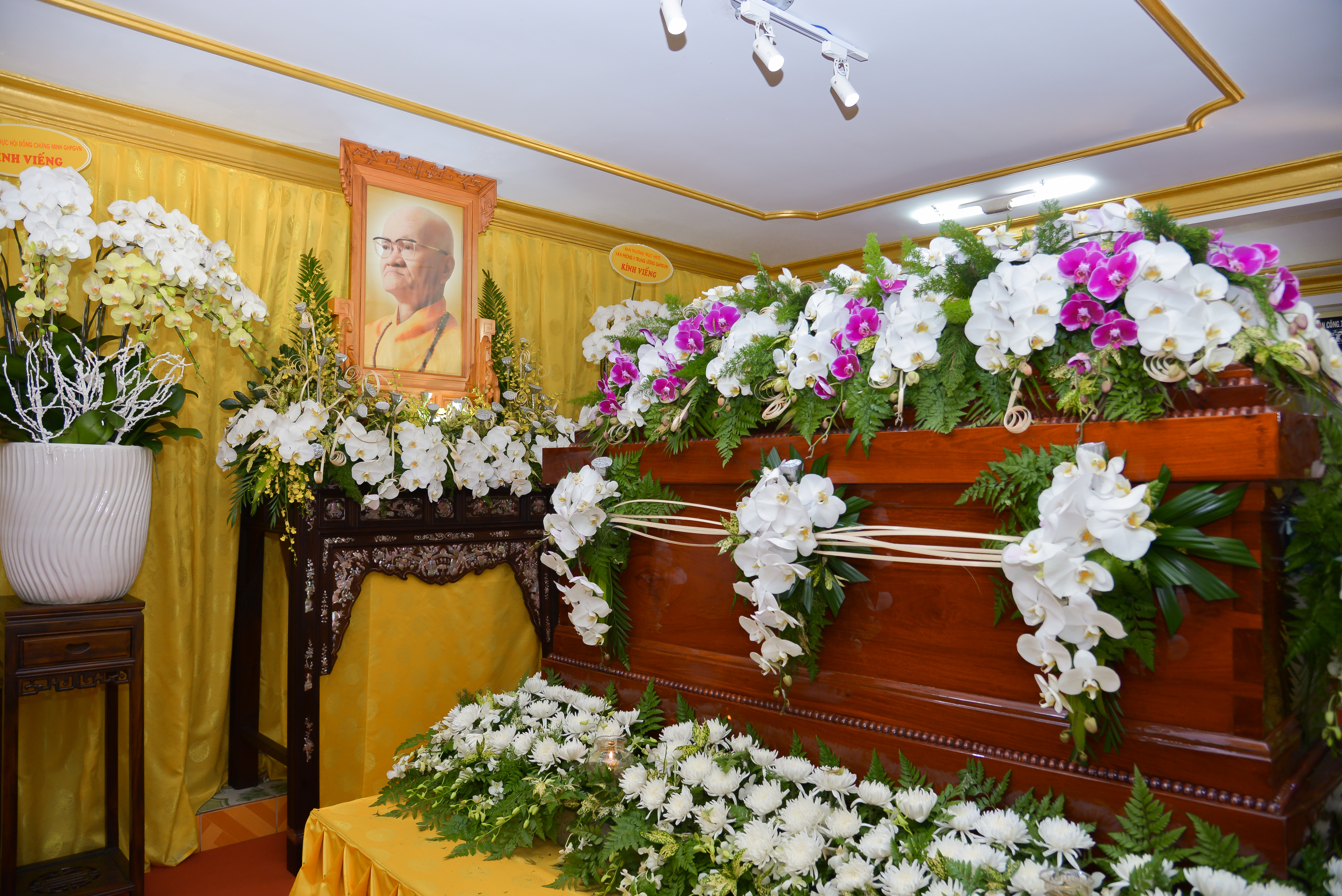 “Hôm nay, trong giờ phút nghìn thu vĩnh biệt này, Trưởng lão Hòa thượng hóa duyên đã mãn, nơi cõi Niết-bàn vô tung bất diệt, Giác linh Trưởng lão Hòa thượng đã tự tại thong dong, vận thần thông đoạn ngự bảo liên đài, xả báo thân, chứng nhập Pháp thân, siêu Tịnh độ. Giờ đây, trước Giác linh đài, chúng tôi HĐCM, HĐTS, các Ban, Viện T.Ư, BTS GHPGVN TP.HCM…,là những pháp hữu Đại thừa đồng hành, đồng sự trong Chánh pháp, là những người còn ở lại, còn nặng nghĩa Thích tử côn bằng, nay thắp nén tâm hương kính cẩn dâng lên cúng dường Giác linh Trưởng lão Hòa thượng để gọi là thể hiện mối tâm giao, tình pháp lữ muôn đời trong Chánh pháp”, Hòa thượng dâng lời tưởng niệm, tiễn biệt.