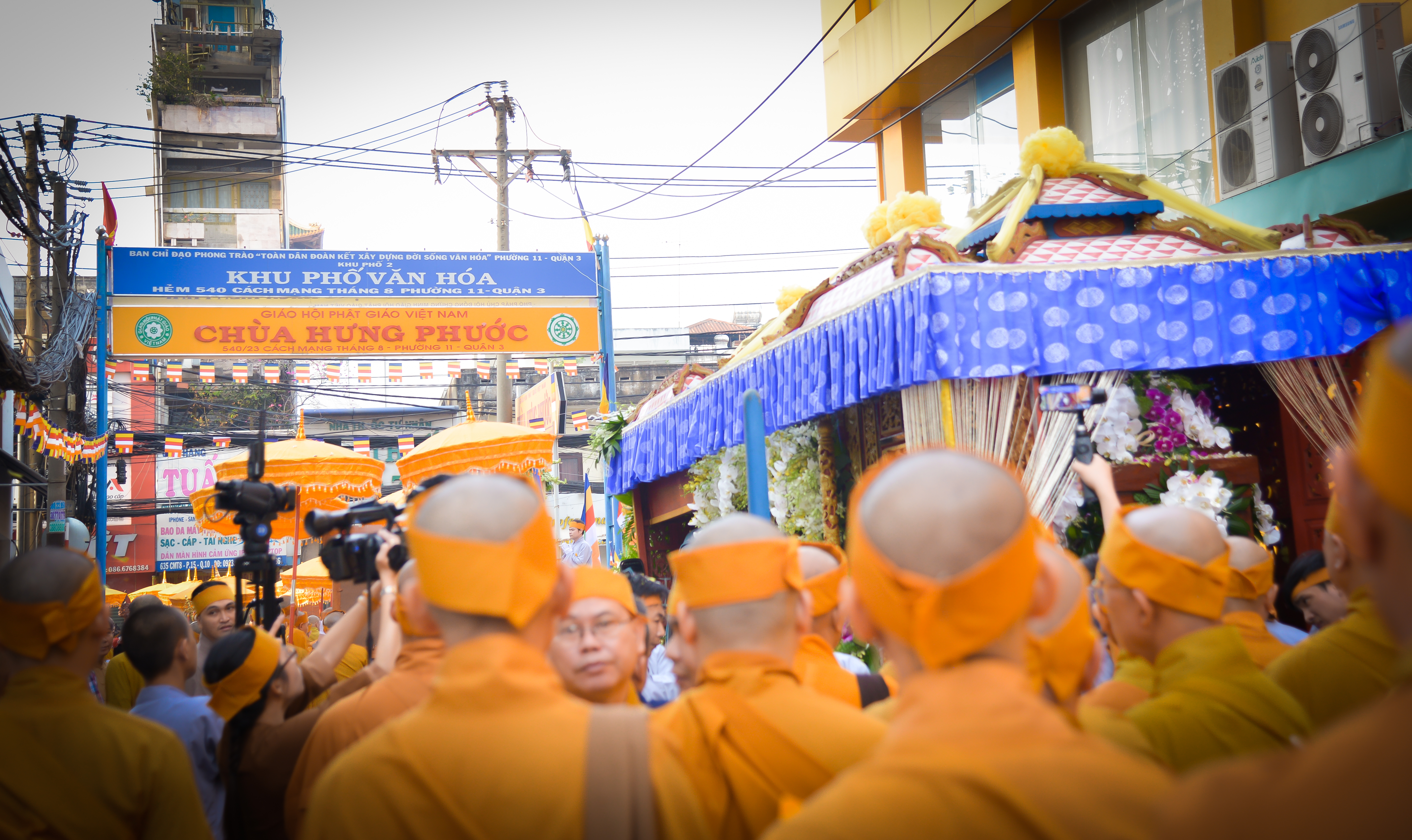 Sau lễ truy niệm của Trung ương Giáo hội, Ban kinh sư xướng lễ phụng tống kim quan cố Trưởng lão Hoà thương rời chùa Hưng Phước để nhập bảo tháp tại chùa Pháp Thanh (H.Giồng Trôm, Bến Tre).