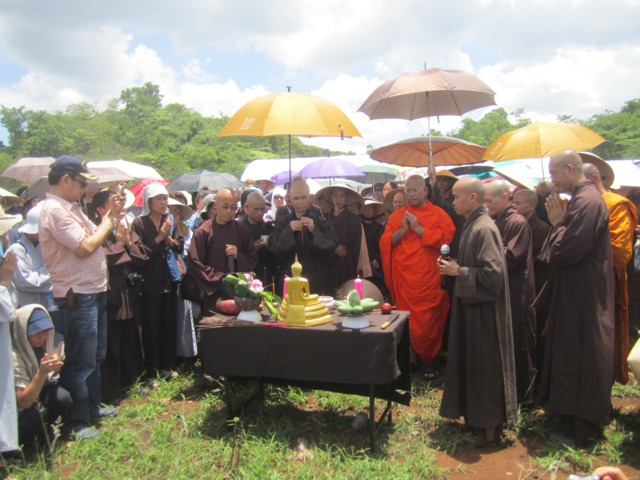 Ấn tượng nhất sớm nay là chiếc đèn cầy nơi bàn thờ Phật. Trên bàn thờ còn có tượng của thiền sư Khương Tăng Hội mà, nói thật, lần đầu tiên tôi mới thấy mặt. Không khí rất trang nghiêm. Phải công nhận rằng, những nghi lễ tổ chức trước khi mặt trời mọc luôn linh thiêng đặc biệt. Cũng thừa nhận rằng các buổi lễ được tổ chức ở trong rừng luôn làm ta nhớ lại thời của Đức Phật cách đây đến 2.600 năm. Riêng bầu không khí thôi đã như đưa tôi về gần với Phật, như nhắc tâm nguyện sống theo hạnh của Như Lai.