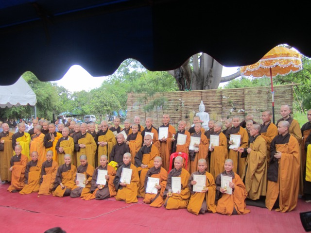 Các bạn có biết rằng tôi có cảm giác đây là lễ tốt nghiệp của các nghiên cứu sinh nhận bằng tiến sỹ. Học tiến sỹ chỉ mất có vài ba năm, còn để nhận đăng từ thầy tôi nghĩ, các vị tu sỹ phải học cả chục năm. Niềm vinh dự của những ai được nhận truyền đăng hôm nay thật lớn. Nhưng trách nhiệm của họ cũng không nhỏ. 15 quý thầy chính thức nhận trọng trách. Họ sẽ bắt đàu chăm lo cho chánh pháp và dạy dỗ cho các sư em ở mức cao hơn.