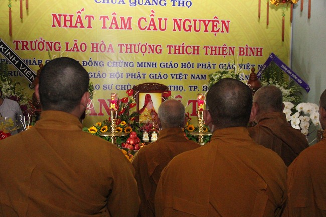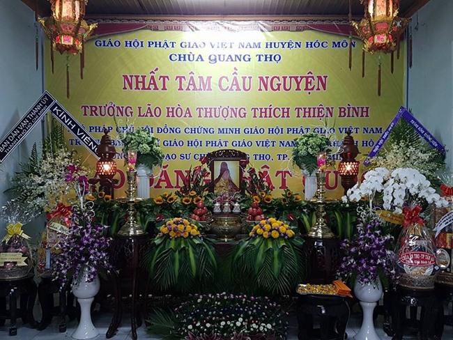 Quang lâm chứng minh có sự hiện diện của HT. Thích Thiện Minh – uỷ viên Thường trực BTS GHPGVN TP.HCM, Trưởng BTS GHPGVN huyện Hóc Môn cùng chư tôn thiền đức Tăng Ni thường trực BTS, chư tôn đức trụ trì các tự viện trong toàn huyện Hóc Môn đã quang lâm dâng lên đức trưởng lão Phó Pháp chủ tân Viên tịch với sự thành kinh vô biên.