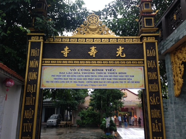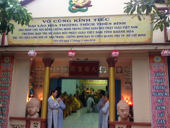 HT. Thích Thiện Bình – Phó Pháp chủ Hội Đồng Chứng Minh Trung Ương Giáo Hội Phật Giáo Việt Nam, Trưởng Ban Trị sự GHPGVN tỉnh Khánh Hòa; – Nguyên Tổng Thư ký Viện Cao đẳng Phật học Hải Đức Nha Trang; – Nguyên thành viên UB.TW MTTQVN; – Nguyên Phó Chủ tịch UB. MTTQVN tỉnh Khánh Hòa; – Trụ trì Tổ đình Thiền Tôn – TP. Huế; – Trụ trì Sắc Tứ Tổ đình Long Sơn, TP. Nha Trang; – Chứng minh Đạo sư Chùa Quang Thọ, TP. Hồ Chí Minh; – Huân chương Độc lập hạng 3; – Huân chương vì sự nghiệp Đại Đoàn kết toàn dân tộc; – Bằng khen của Ủy Ban Trung ương Mặt trận Tổ quốc Việt Nam tặng; – Bằng khen của Ủy Ban Nhân dân và Ủy Ban Mặt trận Tổ quốc Việt Nam tỉnh Khành Hòa. – Bằng Tuyên dương Công đức của Hòa thượng Chủ tịch HĐTS GHPGVN.