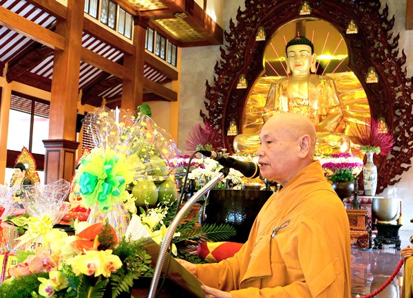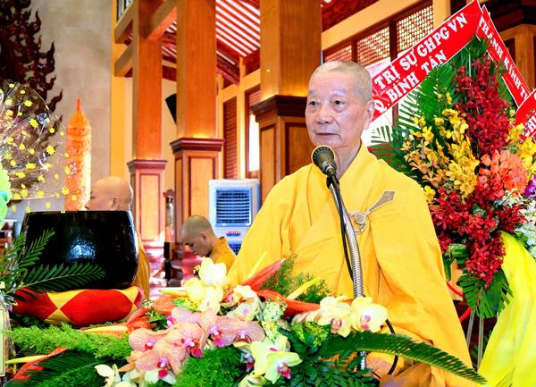 HT.Thích Thiện Nhơn – Chủ Tịch HĐTS GHPGVN đã thay mặt Trung Ương GHPGVN, BTS GHPGVN TP.HCM tuyên đọc tiểu sử cố Đại lão HT.Thích Từ Nhơn (Ảnh : Minh Ân)