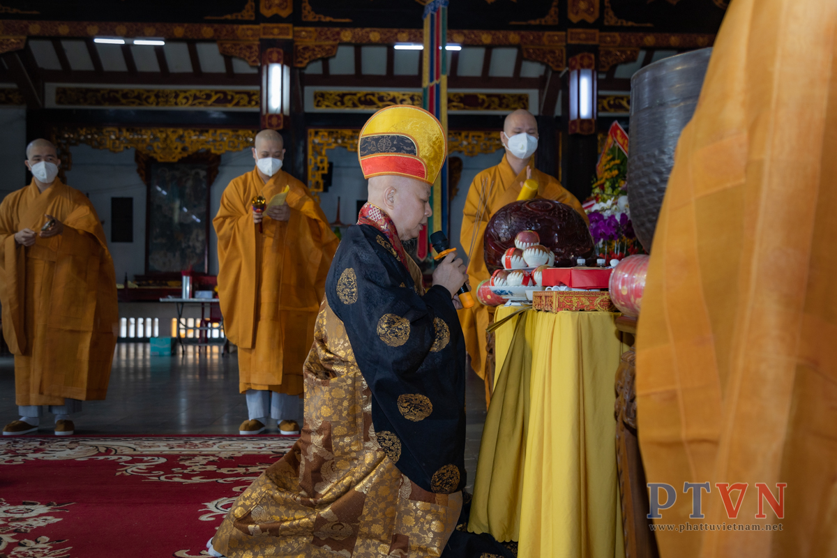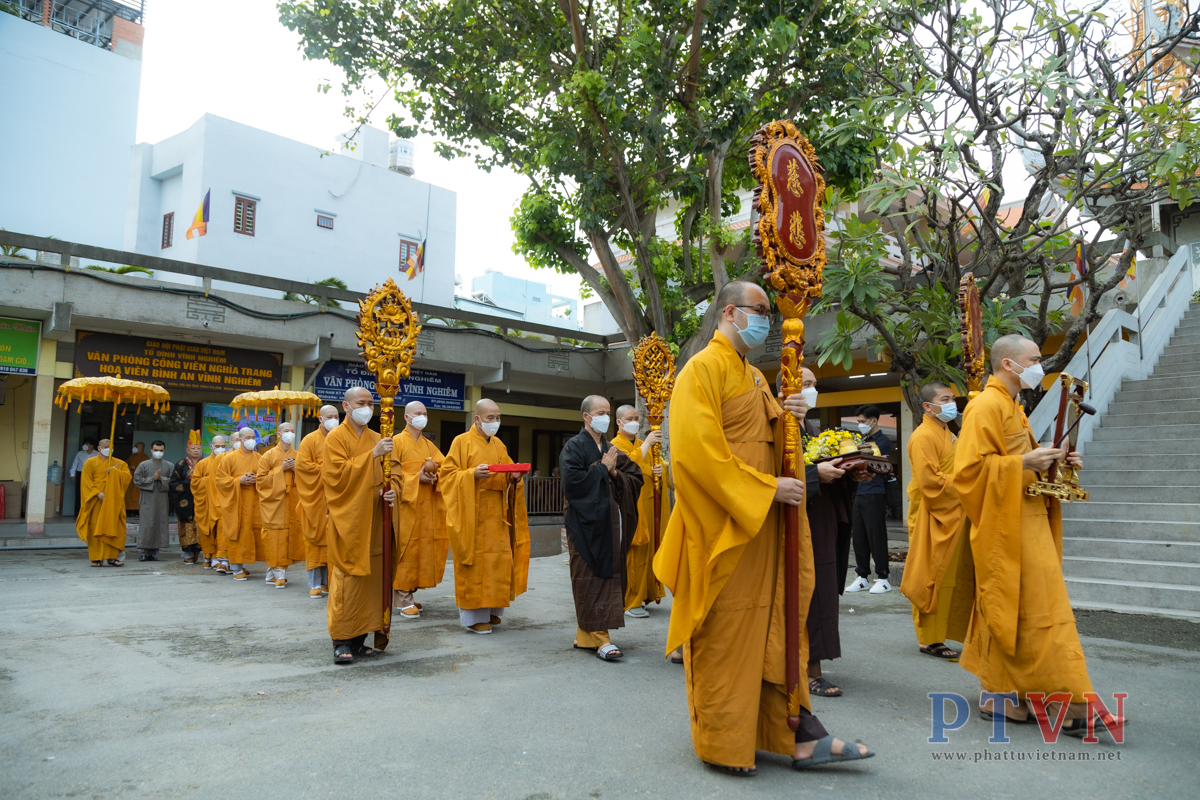 Trước đó, chư tôn đức môn đồ pháp quyến đã tác bạch cung thỉnh Hòa thượng Thích Lệ Trang – Phó Trưởng ban Nghi lễ Trung ương, Phó Trưởng ban Trị sự kiêm Trưởng ban nghi lễ Phật giáo TP.HCM cùng chư tôn đức Ban Nghi lễ để cử hành các nghi thức cung tiến Giác linh cố Đại lão Hoà thượng Đệ tam Pháp chủ GHPGVN theo nghi thức truyền thống.