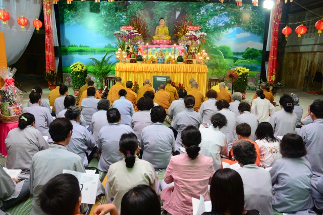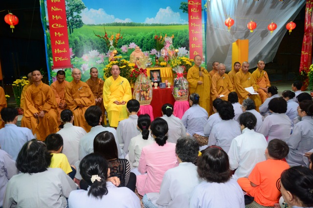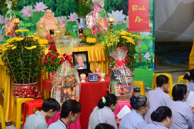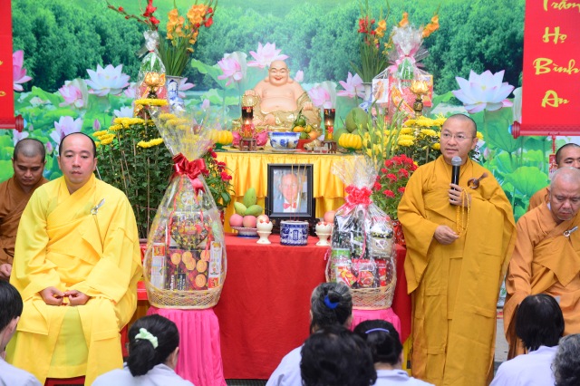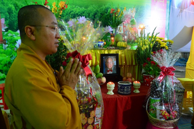 Kế tiếp, ĐĐ. Thích Nhật Thiện – Phó trụ trì chùa Giác Ngộ đã tuyên đọc điếu văn tưởng niệm, ôn lại cuộc đời và những công lao đóng góp của vị cố giáo sư – một tri thức Phật tử lỗi lạc. Tiếp theo là phần nghi thức tưởng niệm và thời kinh cầu siêu của chư Tăng và Phật tử chùa Giác Ngộ.