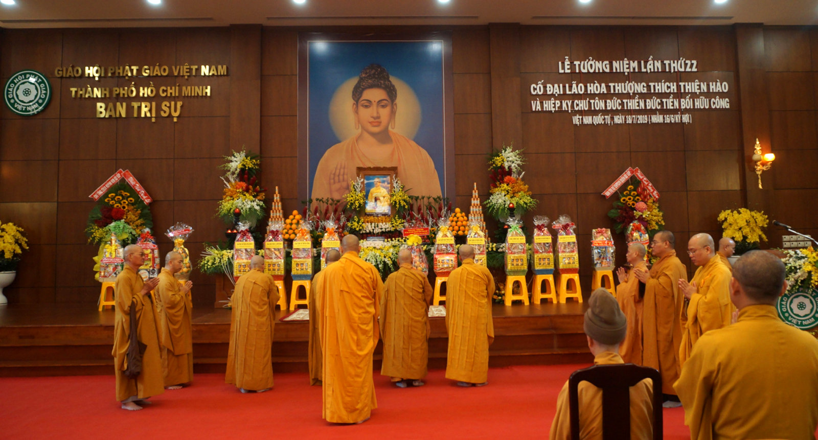 Theo tin từ Văn phòng BTS GHPGVN TP.HCM, vào lúc 8 giờ sáng mai ngày 18/7/2019 (16/6/Kỷ Hợi) tại Việt Nam Quốc Tự (Quận 10) sẽ diễn ra lễ tưởng niệm lần thứ 22 ngày viên tịch của cố Đại lão HT. Thích Thiện Hào – Nguyên Phó Chủ tịch Thường trực HĐTS, Trưởng ban Trị sự THPG Tp. Hồ Chí Minh.