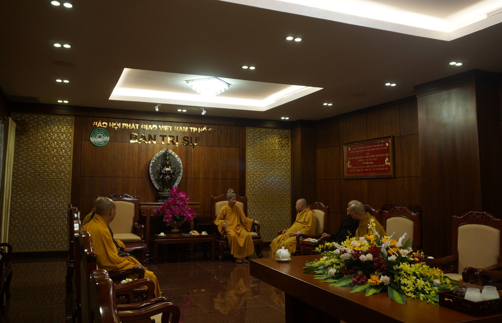 Nhân diịp này, HT.Thích Thiện Pháp cũng đã đến vấn an sức khỏe đến HT.Thích Trí Quảng – Phó pháp chủ kiêm Giám luật HĐCM, Trưởng BTS GHPGVN TP.HCM.