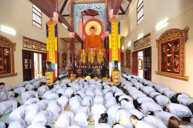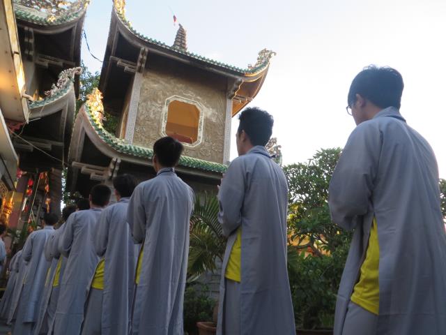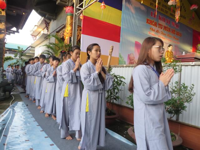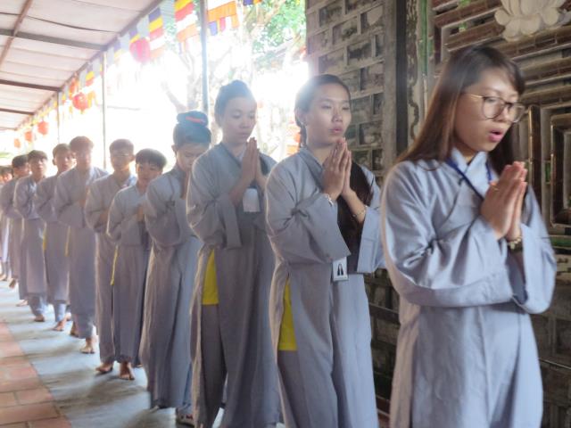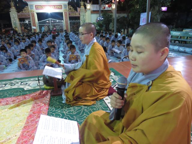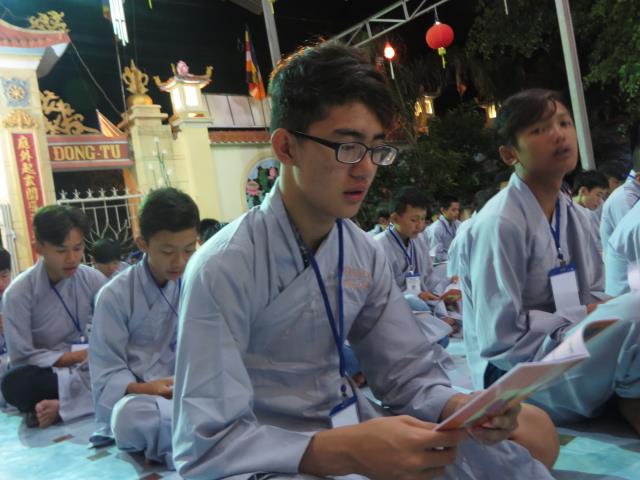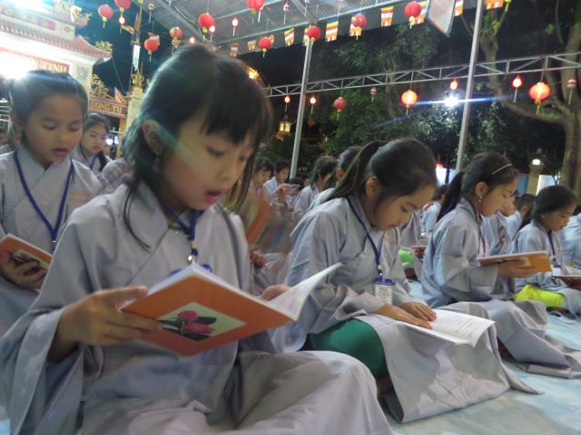Bốn ngày được tu học tại chùa Giác Hải, các bạn trẻ được quý thầy cô trong BTC hướng dẫn tụng kinh báo hiếu công ơn cha mẹ.