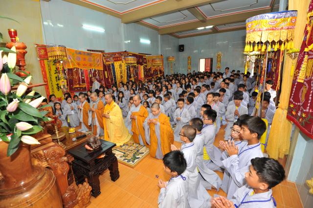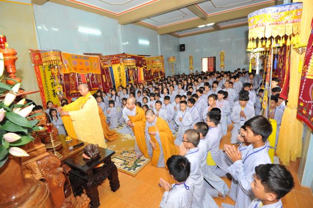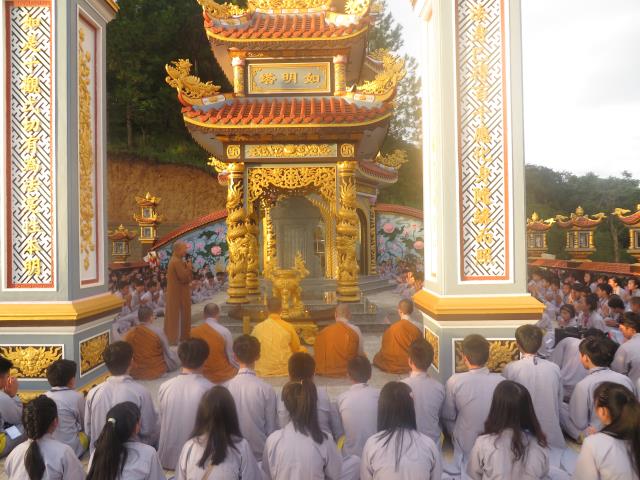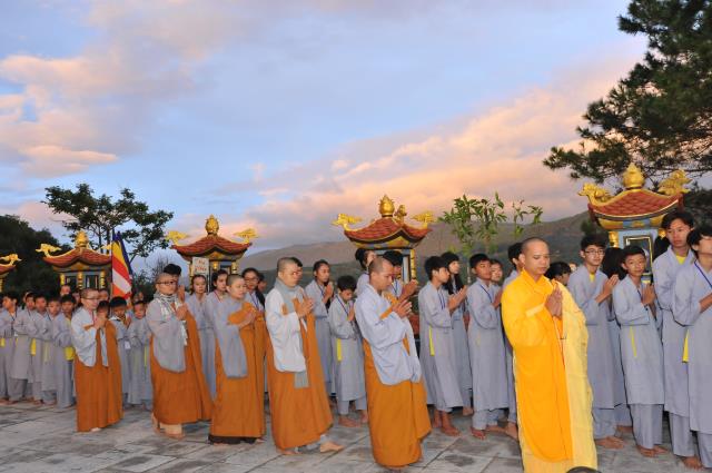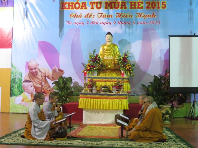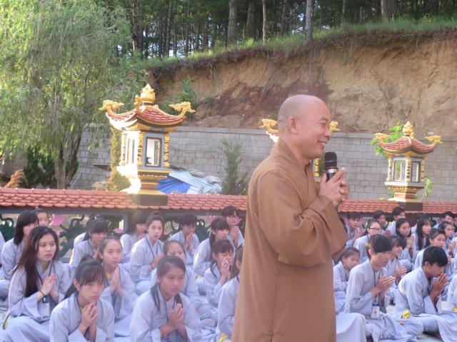 Sau đó các em được TT. Thích Phương Đạt, phó BTS Phật giáo tỉnh Quảng Bình, trụ trì chùa Giác Nguyên chia sẻ ngắn về những trải nghiệm trong cuộc sống. Thượng tọa đã nhắc nhỡ các em sau khi rời khóa tu về nhà, hãy hiếu thảo với cha mẹ, ông bà, luôn thuận thảo với anh chị em, vâng lời thầy cô giáo, hãy là nhân tố hữu ích cho cuộc đời và đạo pháp.