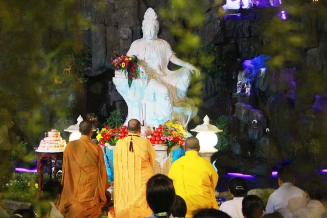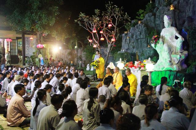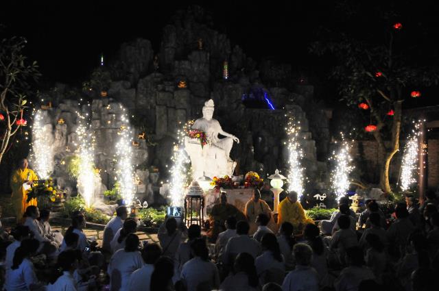 Cả buổi lễ là một bản hòa tấu hay và đẹp. Hay vì chỉ trong vỏn vẹn khoảng thời gian ngắn ngủi, không gian nhỏ bé, nhưng cả đạo tràng đã được thấm nhuần những bài học vi diệu về công hạnh của Đức Bồ Tát Quán Âm, cũng như nhân duyên to lớn và lòng bi mẫn của Ngài với chúng sanh nơi cõi Ta Bà, thông qua thời pháp thoại ngắn của TT. Thích Phước Niệm. Đẹp vì buổi lễ được bắt đầu bằng tràng pháo hoa rực sáng một góc trời; và cái đẹp còn tròn vẹn hơn nữa nhờ vào hình ảnh hàng trăm con người, tay cầm đèn búp sen, đồng thanh niệm hồng danh Bồ Tát Quán Âm giữa muôn ánh nến lung linh huyền diệu, tỏa rạng chốn Thiền môn trong khoảnh khắc truyền đăng.